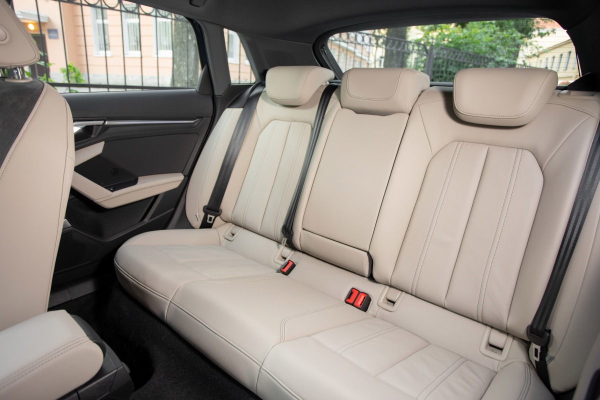 Заднему «дивану» тоже нашлось чем удивить. В первую очередь — простором. Если при моих 180 см роста и 90 кг веса в предшественнике не то чтобы было тесно, но чувство локтя не покидало ни на минуту, то в новинке остается еще небольшой запас по всем трем направлениям, учитывая, что немцы смогли чуть-чуть наклонить спинку «дивана». В общем, A3 теперь вполне справится с ролью единственной машины в небольшой семье.