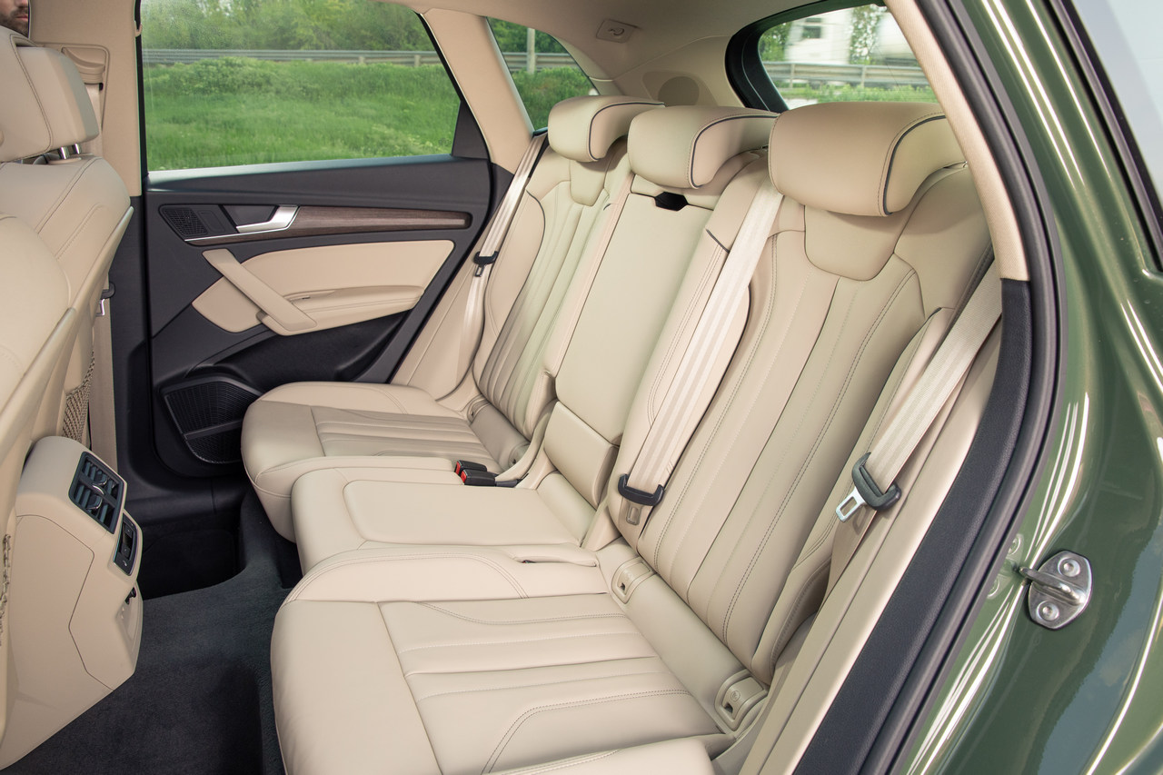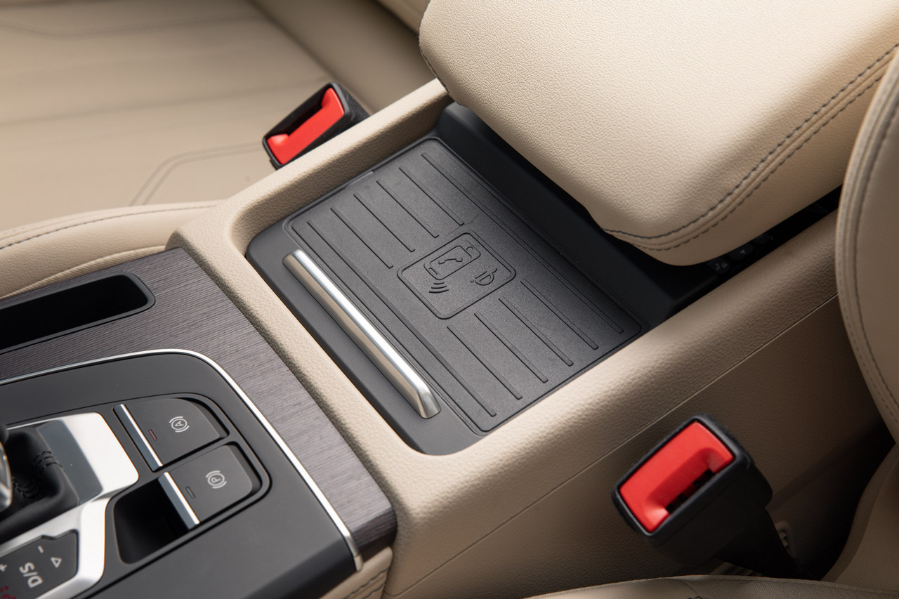 Audi Q5 прекрасно приспособлен для путешествий. Тут, например, есть подогреваемые или охлаждаемые подстаканники, USB-порты двух видов, индукционная зарядка для смартфона и масса отсеков для мелочей. Кроме того, на свое усмотрение можно трансформировать пространство в 610-литровом багажнике благодаря трем раздельным секциям спинки заднего «дивана»