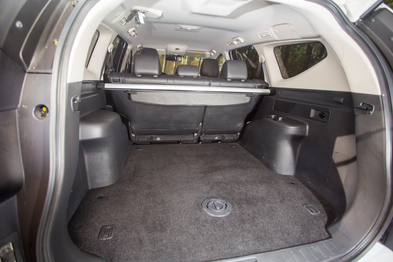 Багажники у внедорожников одинаково огромные — до 1000 литров при загрузке под потолок. Однако в Toyota заявлены данные без учета третьего ряда, который съедает достаточно пространства. При остром желании его можно демонтировать. В семиместной конфигурации отсек Fortuner сокращается до 200 литров. Запаски в обеих машинах находятся под днищем