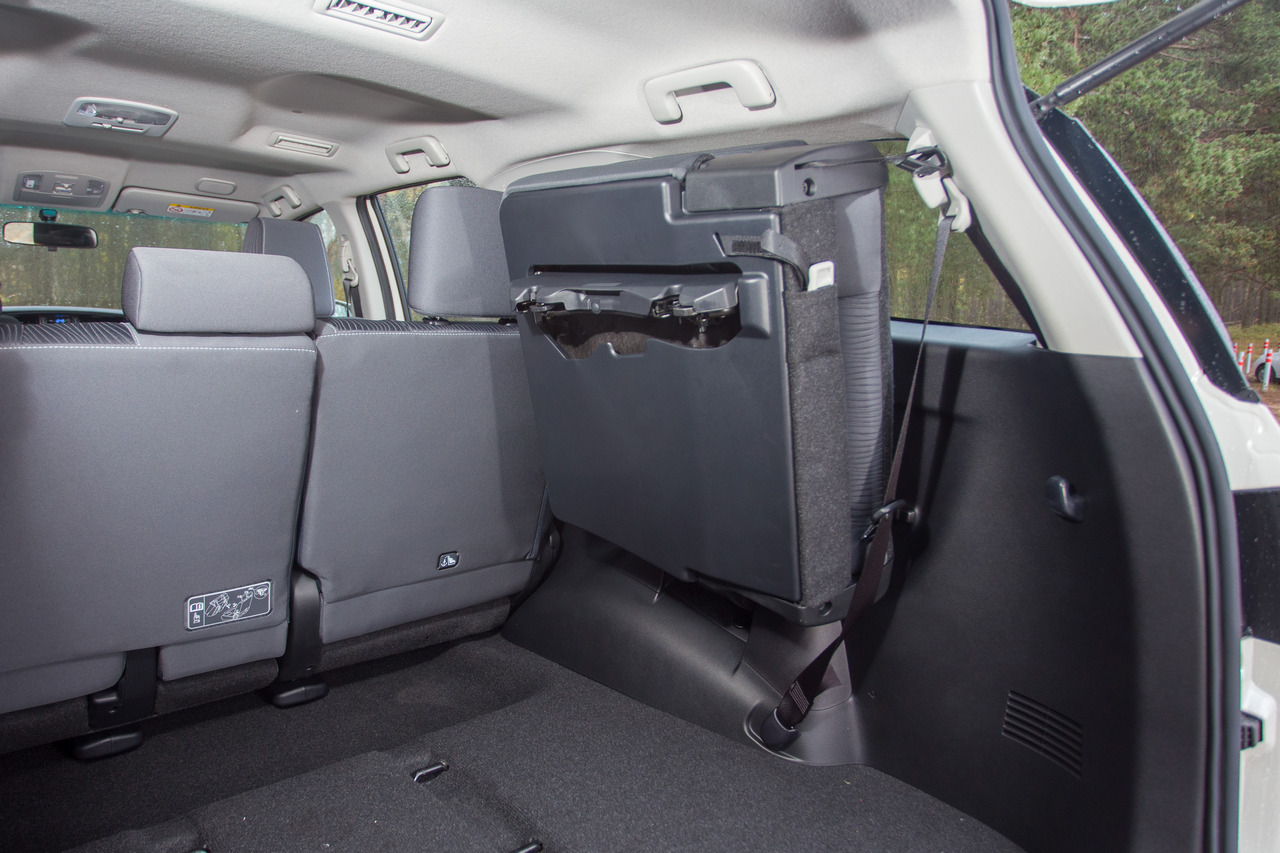 На заднем ряду и в том и в другом внедорожнике раздолье. Позаботились японцы и о комфорте: индивидуальные дефлекторы обдува, подлокотники, подстаканники, подогрев, а главное — регулировки. Причем у «Тойоты» можно не только наклонить спинку, но и подвинуть сидушку.