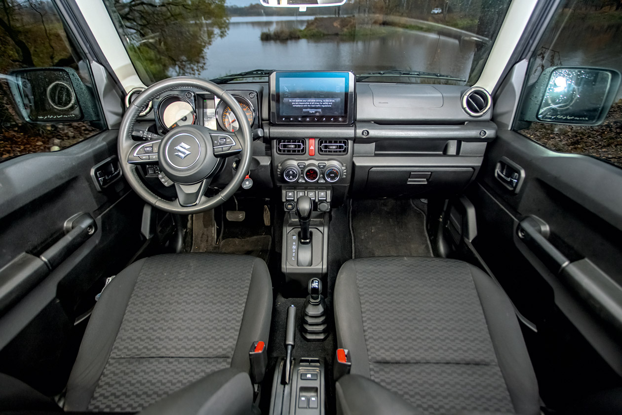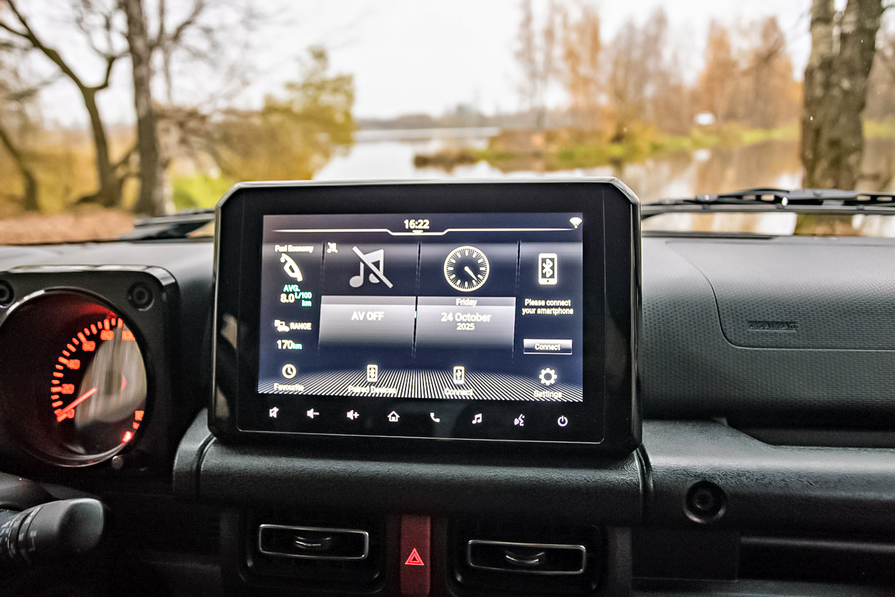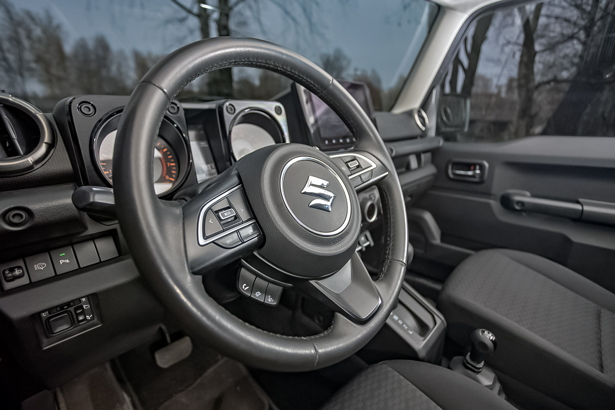 Внешне Jimny даже спустя шесть лет после дебюта выглядит вполне свежо и все еще актуально. А вот внутри автомобиль изначально воспринимался эдаким пришельцем из прошлого десятилетия — скорее даже из «нулевых». И это «не баг, а фича», как принято выражаться в среде айтишников. Согласитесь, было бы странно, если бы внедорожник с явным намеком на брутальность снаружи внутри имел бы уже привычные нам огромные дисплеи, сенсорные кнопки и атмосферную подсветку, — это выглядело бы несуразно. Так что решение сделать внедорожник максимально простым и утилитарным внутри лично я поддерживаю на сто процентов! Если уж создавать образ, то придерживаться его до конца — даже если для этого придется идти не в ногу со временем. Справедливости ради скажем, что никаких неудобств в салоне «Джимни» нет, — просто от его основных элементов управления мы уже успели отвыкнуть.