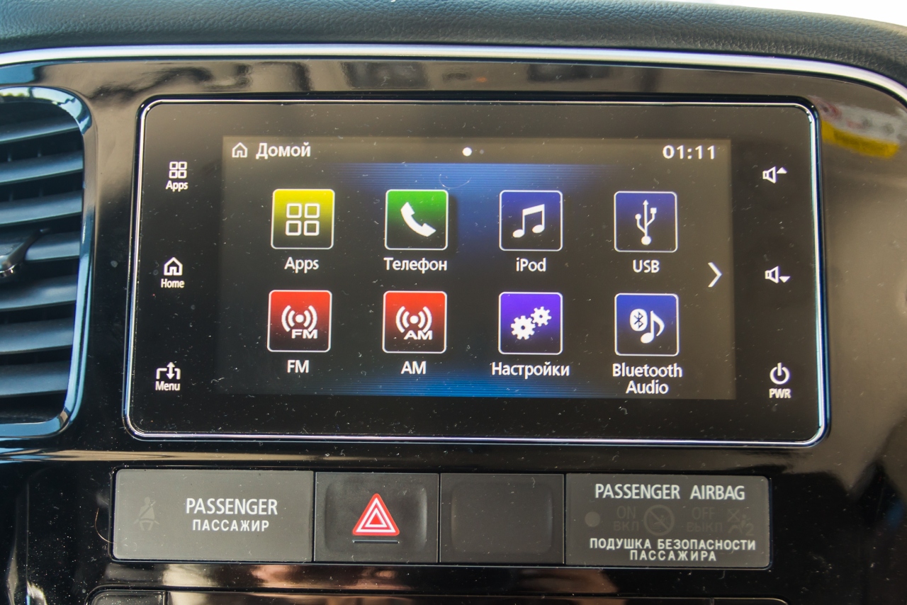 Мультимедиа Mitsubishi — самая скромная, но самая простая и наглядная в плане интерфейса. Правда, окно склейки камер кругового обзора мелкое и почти бесполезное, а навигации не бывает даже за доплату. Единственный способ получить на экране путеводитель — подключать к системе смартфон