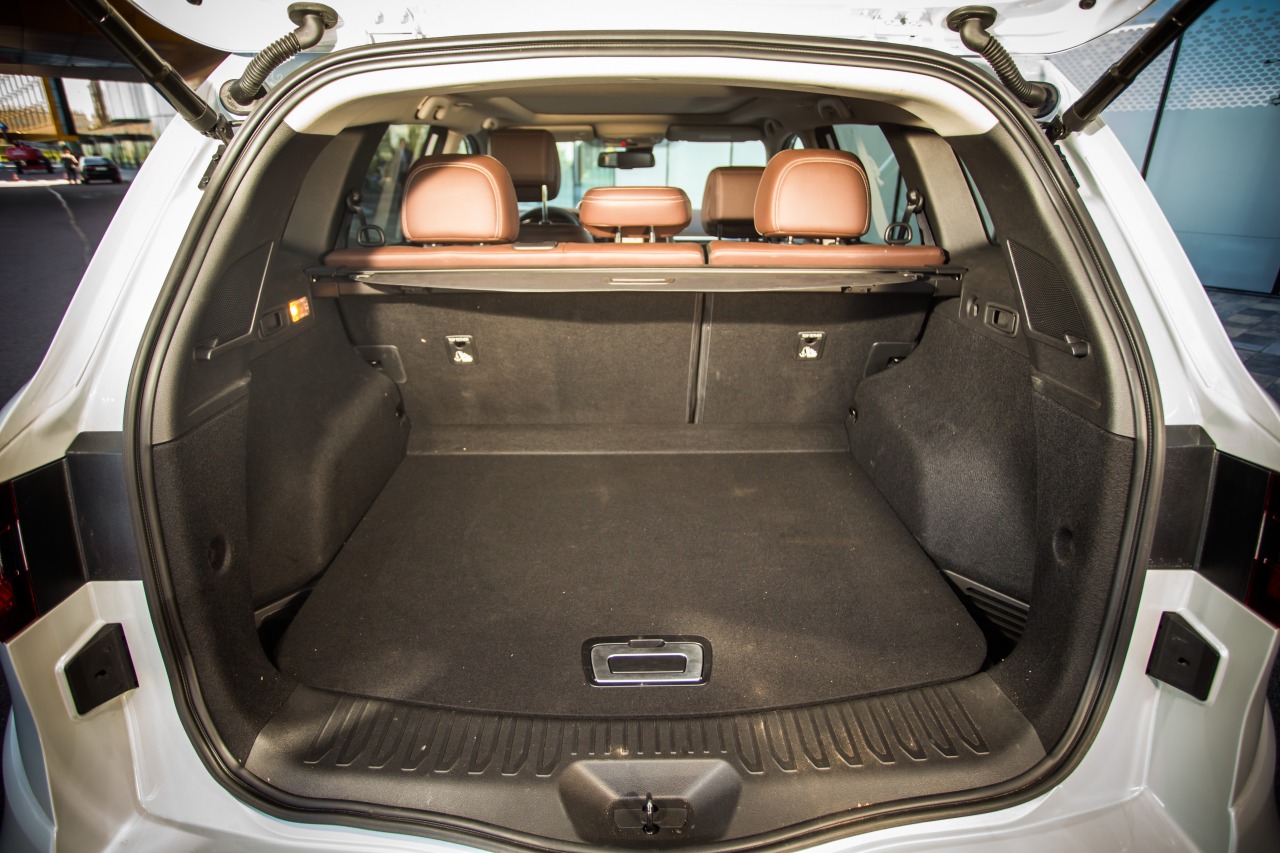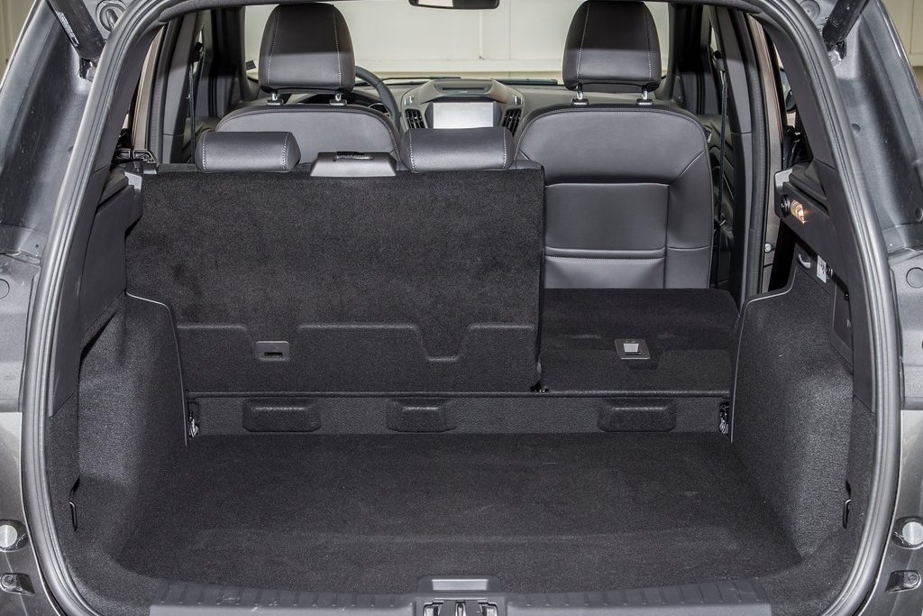 Все три кроссовера оснащены электроприводом пятой двери. Самый вместительный багажник у нового Koleos (слева) — 538 литров. Пространство аккуратно отделано, имеет пару карманов, рычажки для складывания дивана и полноразмерное запасное колесо со встроенным в него сабвуфером. У Mitsubishi (по центру) — 477 литров плюс вместительное подполье. Есть карманы, секции по краям и полноразмерная запаска под днищем. Самый небольшой «трюм» предсказуемо у Ford (справа) — он самый короткий, а потому под пятой дверью 406 литров. Кроме того, Kuga — единственный кроссовер с «докаткой», вокруг которой есть небольшой органайзер.