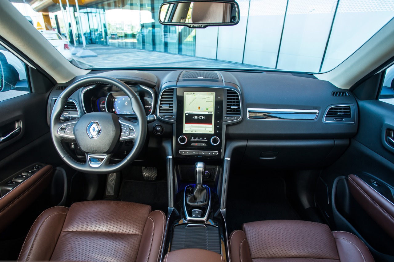 Если после того как Renault приглянулся внешне, сесть внутрь, то с большой вероятностью можно говорить о том, что покупка машины — дело решенное. Koleos впитал в себя все новомодные тренды, главный из которых, конечно, большой вертикальный сенсорный экран, как у Tesla или Volvo. Здесь же — цифровая «приборка» с несколькими вариантами оформления, выбор цветов подсветки интерьера и благородная темно-коричневая кожа электрофицированных сидений с вентиляцией. К опциональному составу Renault, как и к простору, претензий нет.