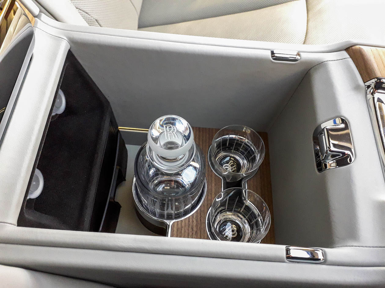Пассажирам положены целых два бара: с охлаждением и без. В каждом — графин и бокалы с вензелями Rolls-Royce