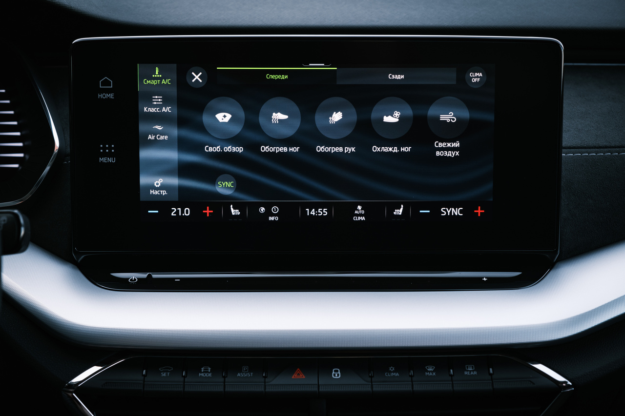 Само собой, чешская новинка оснащена всеми современными помощниками, которые превращают машину в полуавтономного робота, следящего за всем, что происходит вокруг. Активный круиз-контроль, система удержания в полосе и мониторинга слепых зон, а также функция автоторможения совсем скоро станут стандартным набором опций. Пока же за них приходится немало доплачивать