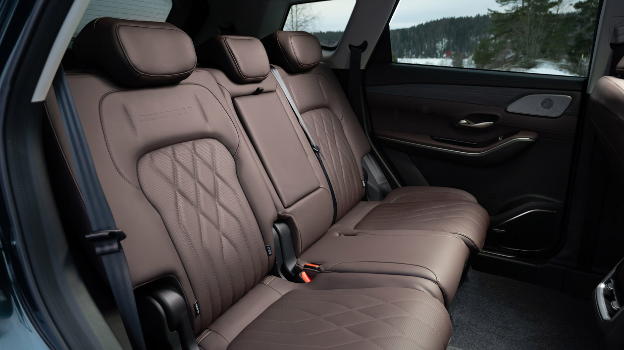 Внутри чувствуется существенная разница не столько в цене автомобилей, сколько в их позиционировании. Начнем с главной «фишки» бренда: все ее машины (по крайне мере пока) — семиместные в любой комплектации. Так что очевидно, что целевая аудитория Soueast — семейные люди среднего достатка. Однако из-за разницы в габаритах полноценно семиместной можно назвать только «девятку». Все-таки лишние 134 мм делают погоду, когда речь идет о третьем ряде. Да, на заднем ряду в «семерке» вполне может разместиться взрослый пассажир, но долгое путешествие превратится для него в мучение.