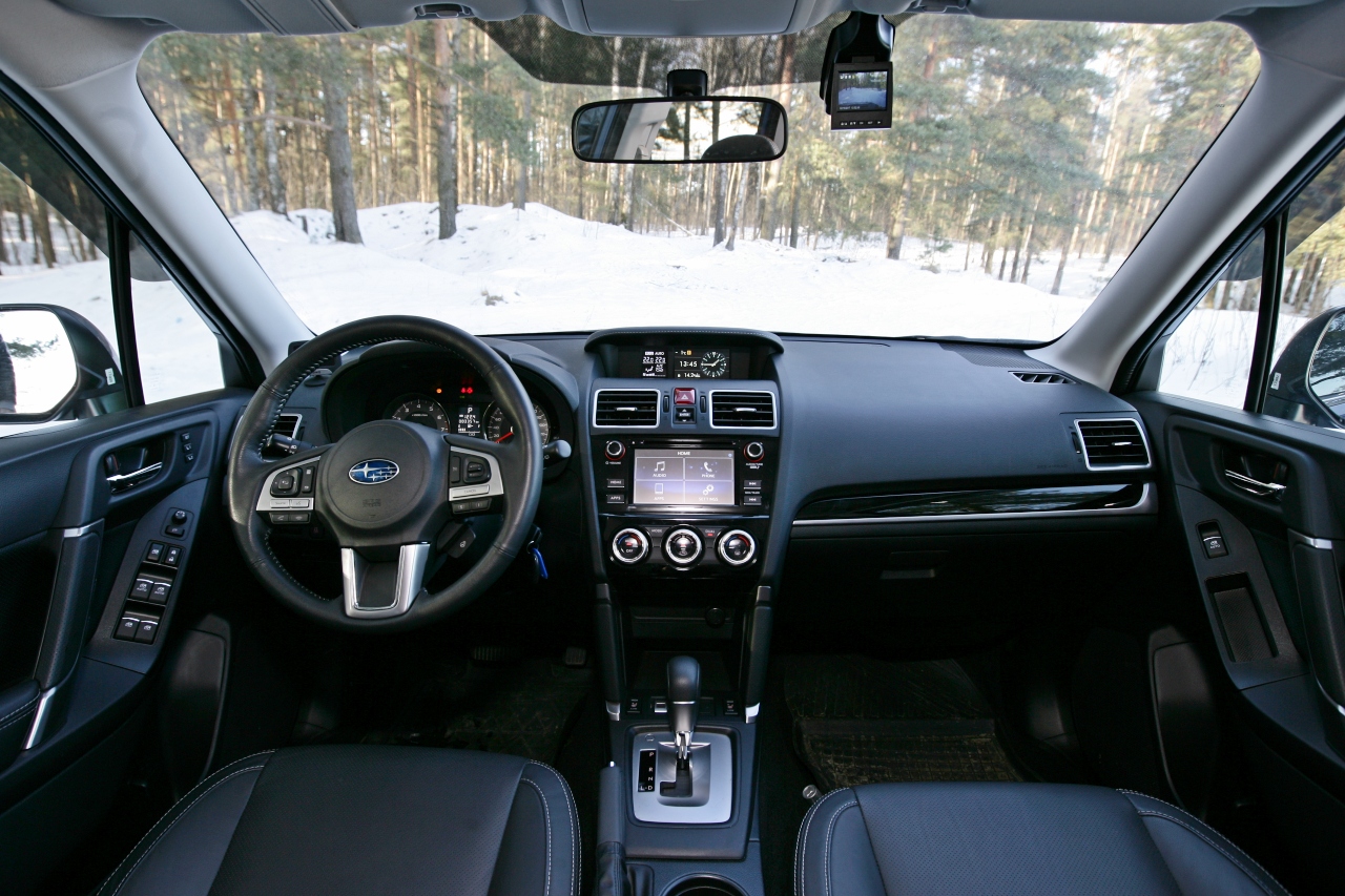 Вообще, складывается ощущение, что японцы из «Субару» все доделки интерьера вносили через силу: мол, и так наша машина хорошо едет, зачем эти обновления?! Очевидный прогресс — только в качестве используемых материалов, отчего салон «Форестера» перестал быть откровенно «дубовеньким». Однако экраны не отличаются современностью и качеством графики, хотя очень информативны, а мультимедиа поддерживает современные технологии вроде CarPlay. Щиток приборов прост как три копейки. Ручки, кнопочки, рычажки и регулировки на японских авто традиционно живут десятилетиями. Причем создатели как специально добавили авторежим стеклоподъемников еще только на одно стекло — на следующем поколении машины, видно, добавят третье, а через поколение — четвертое. В общем, все подчинено приоритету практичности и здравого минимализма.