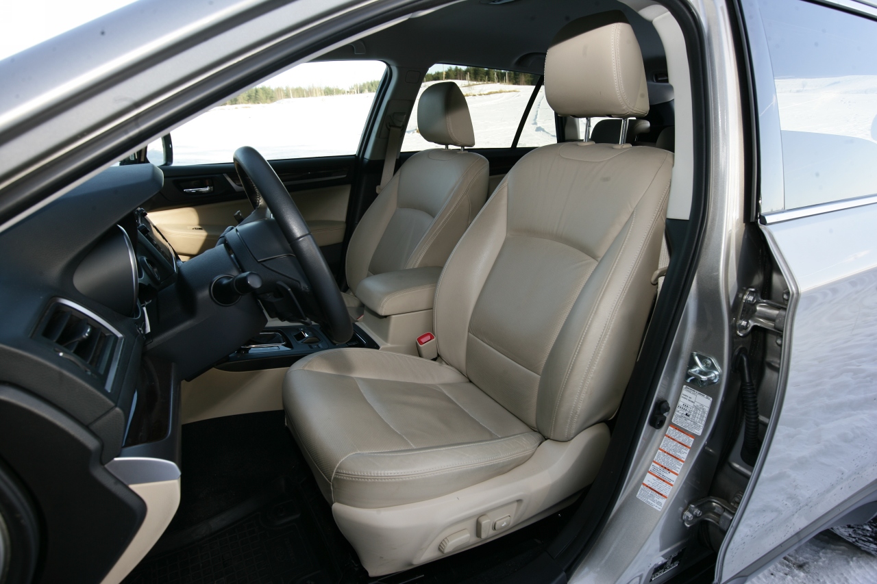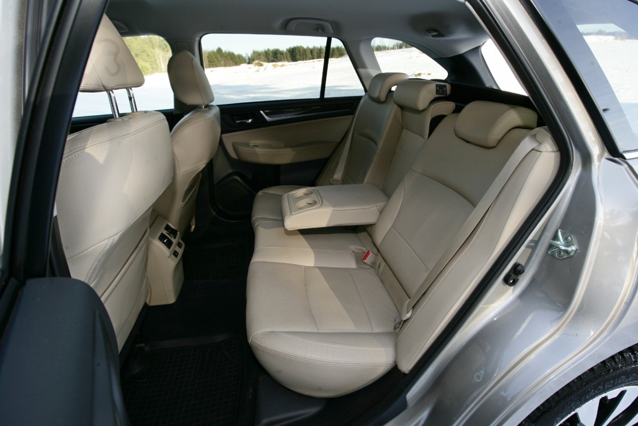 В Subaru Outback пересаживаешься, как в машину следующего класса и поколения: от добротной простоты «собрата» тут не осталось почти ничего, кроме отдельных стилистических и унифицированных деталей. Дороговизну салону, конечно, придает кремовая кожа, а также вставки с фактурой под лакированное и натуральное дерево. Опций больше, материалы еще качественнее, к тому же аккуратно украшены металлическим деталями. Заметно более продвинутой выглядит мультимедийная станция, позволяющая управлять функционалом с простотой и быстрой планшета.