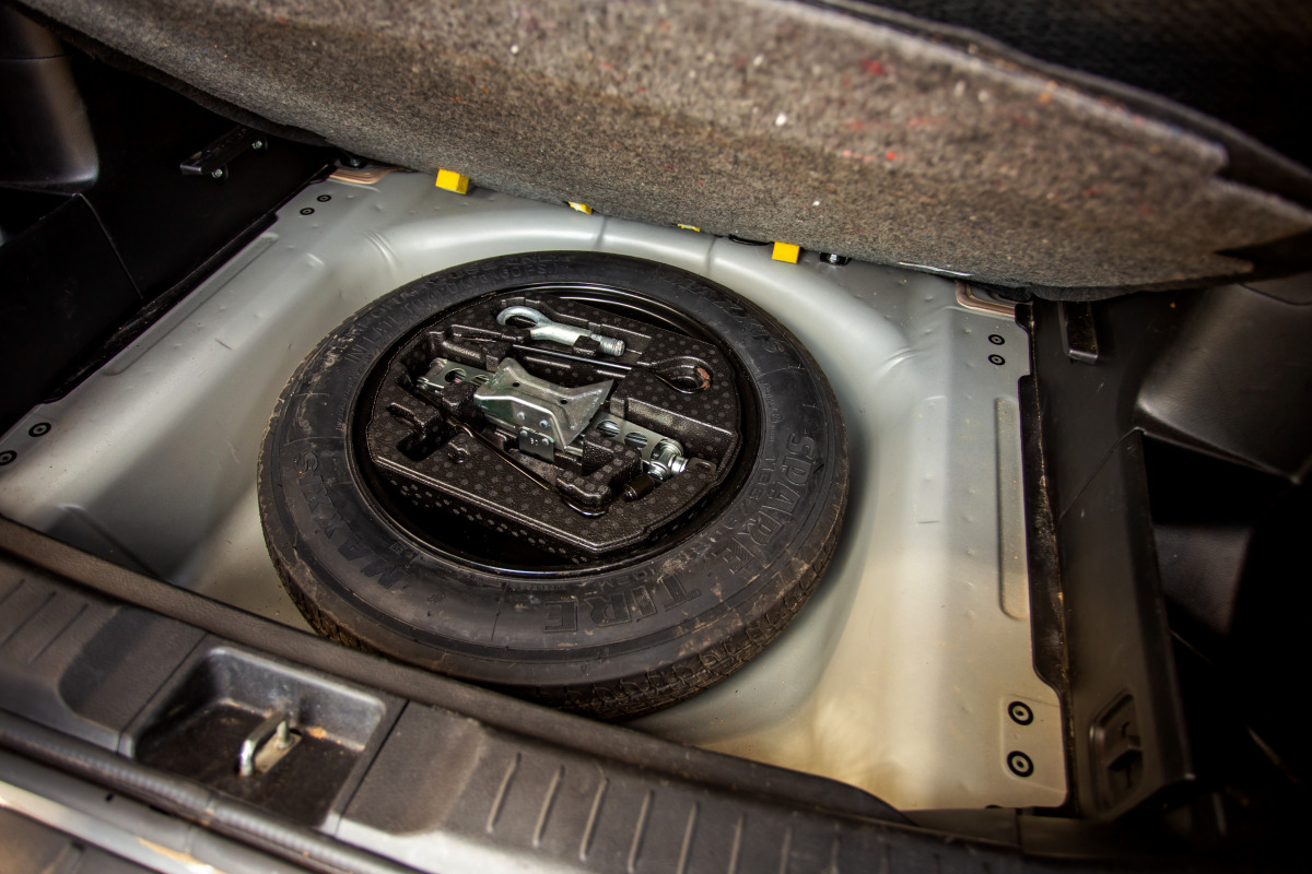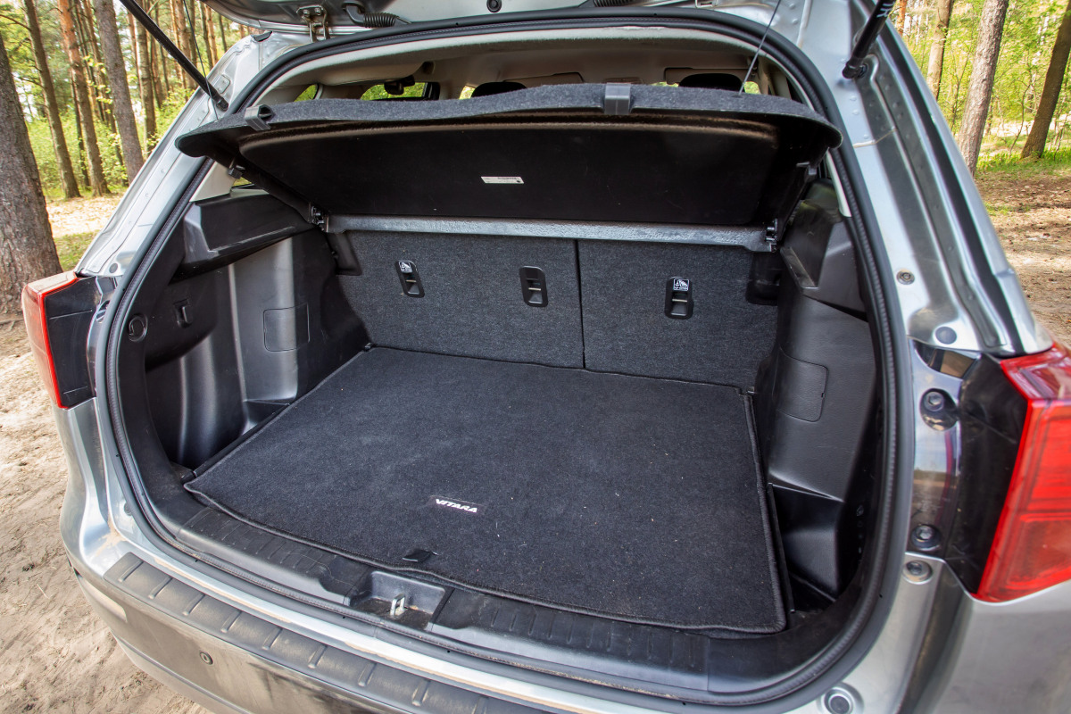 По объему багажник «Витары» маловат (всего 375 литров при установленных задних сиденьях), зато неплохо продуман: здесь есть и крючки для фиксации поклажи, и ниши под канистры и инструмент, и регулируемый по высоте пол. И погрузочная высота невелика. В подполье – докатка