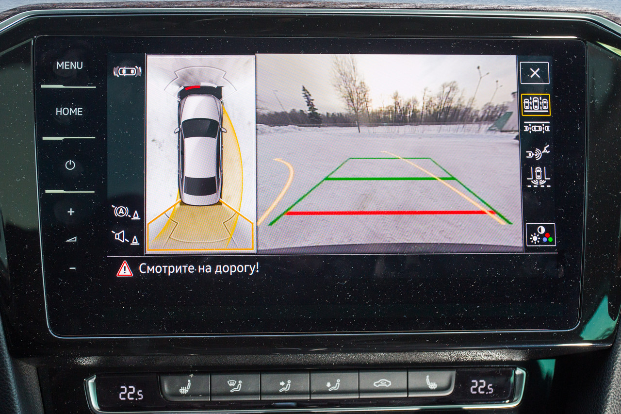 Что касается оснащения, Volkswagen если и проигрывает Kia, то не сильно. А в некоторых аспектах даже превосходит. Навороченная мультимедиа MIB3 проще в основном за счет графики и второстепенных возможностей, зато качество камер у «Пассата» выше. Все радарные системы — от активного круиз-контроля до системы автоторможения при езде задним ходом — у «Фольксвагена» тоже имеются, а проектор при желании можно дозаказать.