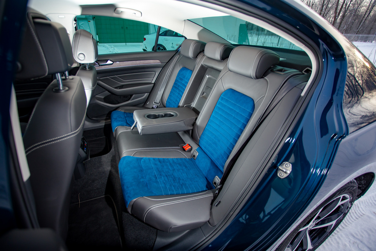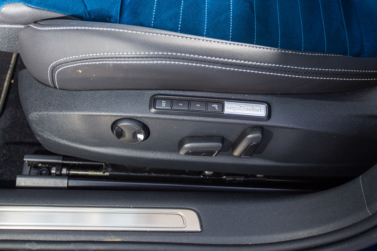 Превосходные передние кресла заметно лучше по профилю и, благодаря алькантаре, более цепкие, причем снабжены простеньким массажем. Задний ряд у «Пассата» чуть просторнее и оснащен лучше Kia. У пассажиров кроме подогрева есть собственный блок климат-контроля, все виды розеток, включая на 230 В, и лаз в багажник за подлокотником.