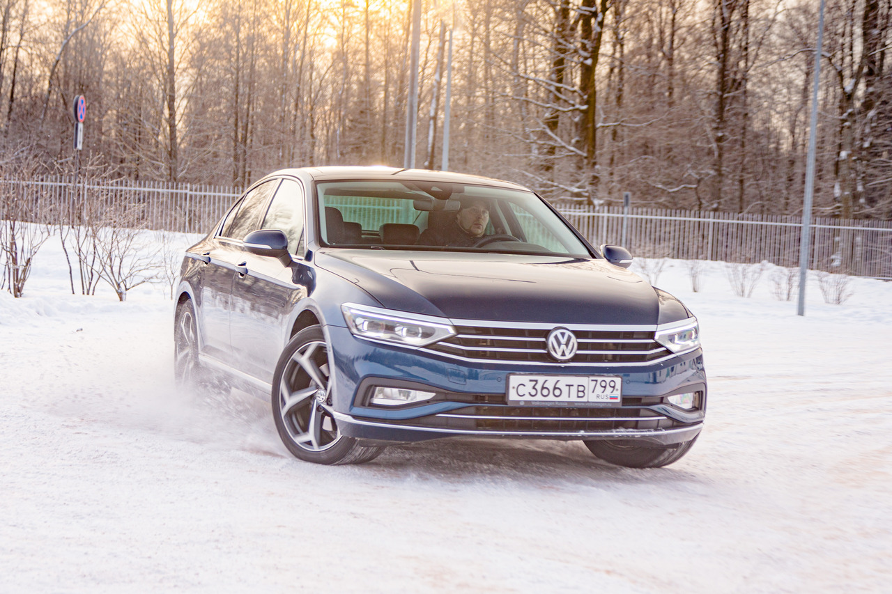 При этом Volkswagen Passat ожидаемо благороден в повадках. Цепкое шасси упруго и тихо отрабатывает практически любые ухабы, шлепая здоровенными колесами только по острым стыкам. Есть завязка на систему выбора характера движения, хотя прямо уж полярными режимы не назвать. «Спорт» не превращает большой седан в нервозного провокатора, а «Комфорт» — в расхлябанную баржу. Passat всегда собран, уверен в себе и дает водителю нужный спектр ездовой информации, сохраняя при этом практически премиальный комфорт.