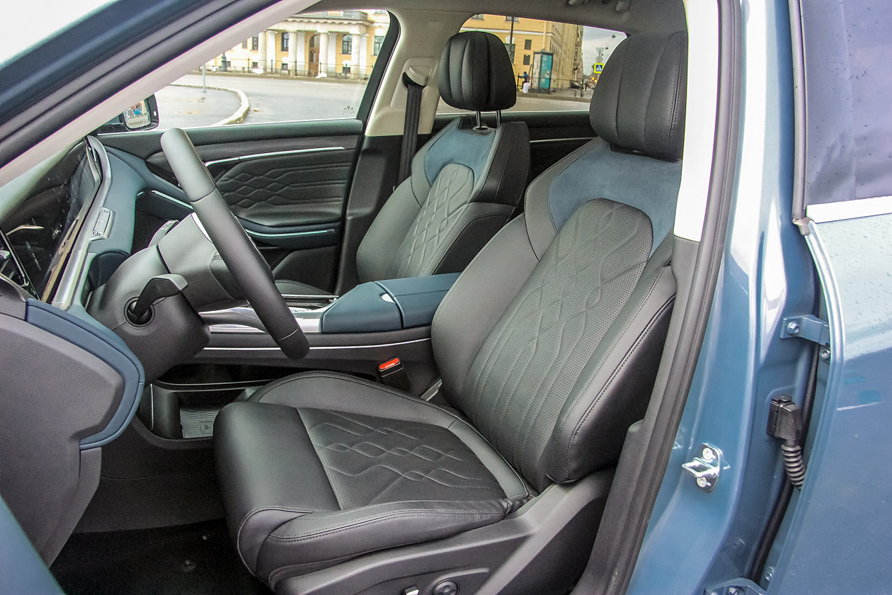 Передние кресла удобны и хорошо оснащены: подогрев, вентиляция и даже функция массажа присутствуют. Но, по меркам премиум-класса, регулировок могло бы быть и побольше