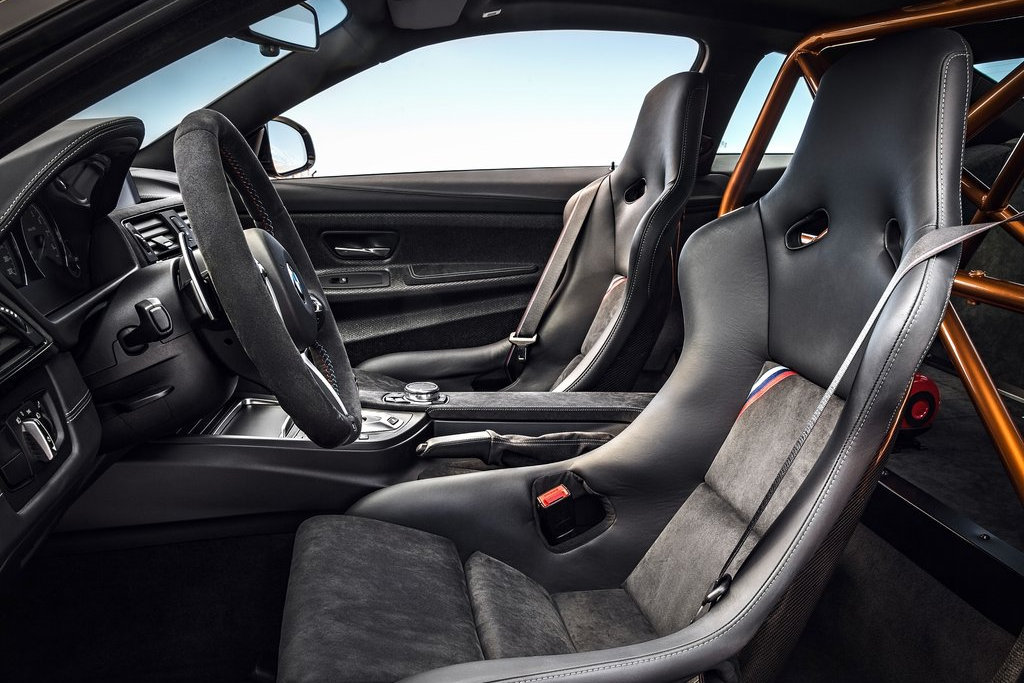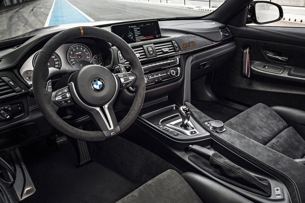 Салон M4 GTS также отделывался с прицелом на радикальное снижение массы машины. Гоночные сиденья на половину легче, по сравнению со стандартными. На месте задних сидений установлена полка из усиленного стеклопластика и задняя карбоновая панель. Оба элемента отделаны Алькантарой и вместе позволяют уменьшить вес примерно на 40%.