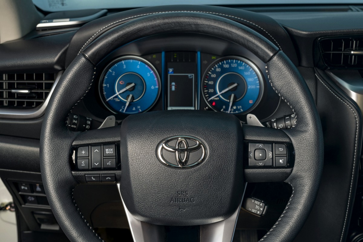 Интерьер обновленного внедорожника также может быть оформлен в двух новых цветах (бежевом или черном), кроме того, в салоне Fortuner в результате рестайлинга появились улучшенные материалы отделки и окрашенные под металл декоративные вставки. В базовую комплектацию «Комфорт» входят передние и задние датчики парковки, круиз-контроль и мультимедийная система с поддержкой Apple CarPlay и Android Auto и 8-дюймовым экраном.
