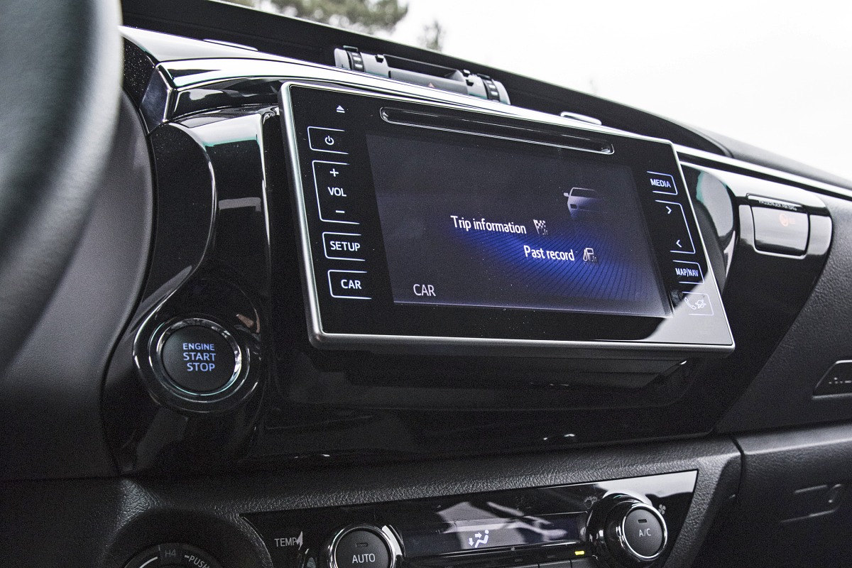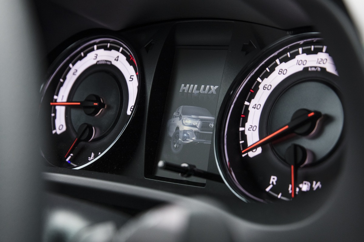 Интерьер Hilux Exclusive отделан материалами черного цвета, включая обивку потолка; сиденья на пикапе в новой спецверсии – с перфорацией, иным стал дизайн приборной панели.