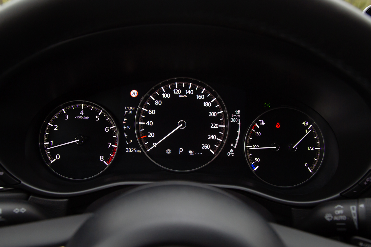 Щедрость на цифровые опции – заслуга исполнений для внутреннего японского рынка, где уже просто не выпускаются менее оснащенные версии. Однако расплата за выбор базовой комплектации CX-30 все же будет: у кроссовера не окажется литых дисков, подогрева сидений и даже кожаной оплетки руля.