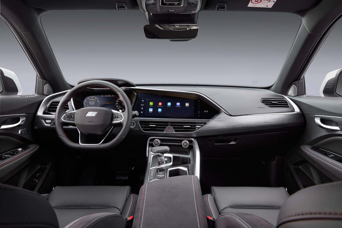 В списке базового для автомобиля оснащения – 12,3-дюймовая цифровая приборная панель, мультимедийная система с сенсорным экраном диагональю 12,3-дюйма, подсветка интерьера в дверных панелях, панорамная крыша с люком, передний подлокотник с боксом для хранения, подстаканники в центральной консоли, четыре USB- разъёма для зарядки гаджетов, полностью светодиодная оптика, 19-дюймовые легкосплавные колёсные диски, а также круиз-контроль с ограничителем скорости, двухзонный климат-контроль и «зимний пакет».