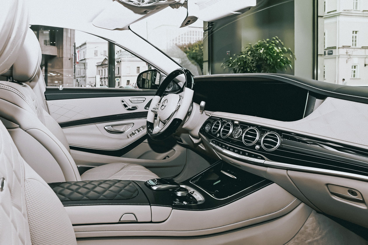Кузов уникального лимузина окрашен в два цвета: «Синий антрацит» и «Серебристый арагонит»; салон автомобиля обшит полуанилиновой кожей Designo Exclusive оттенков «Бежевый шелк» и «Морская бездна».