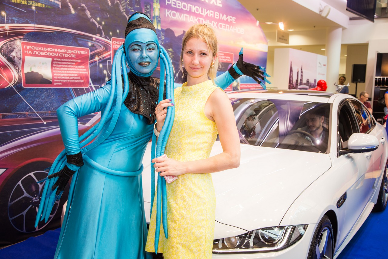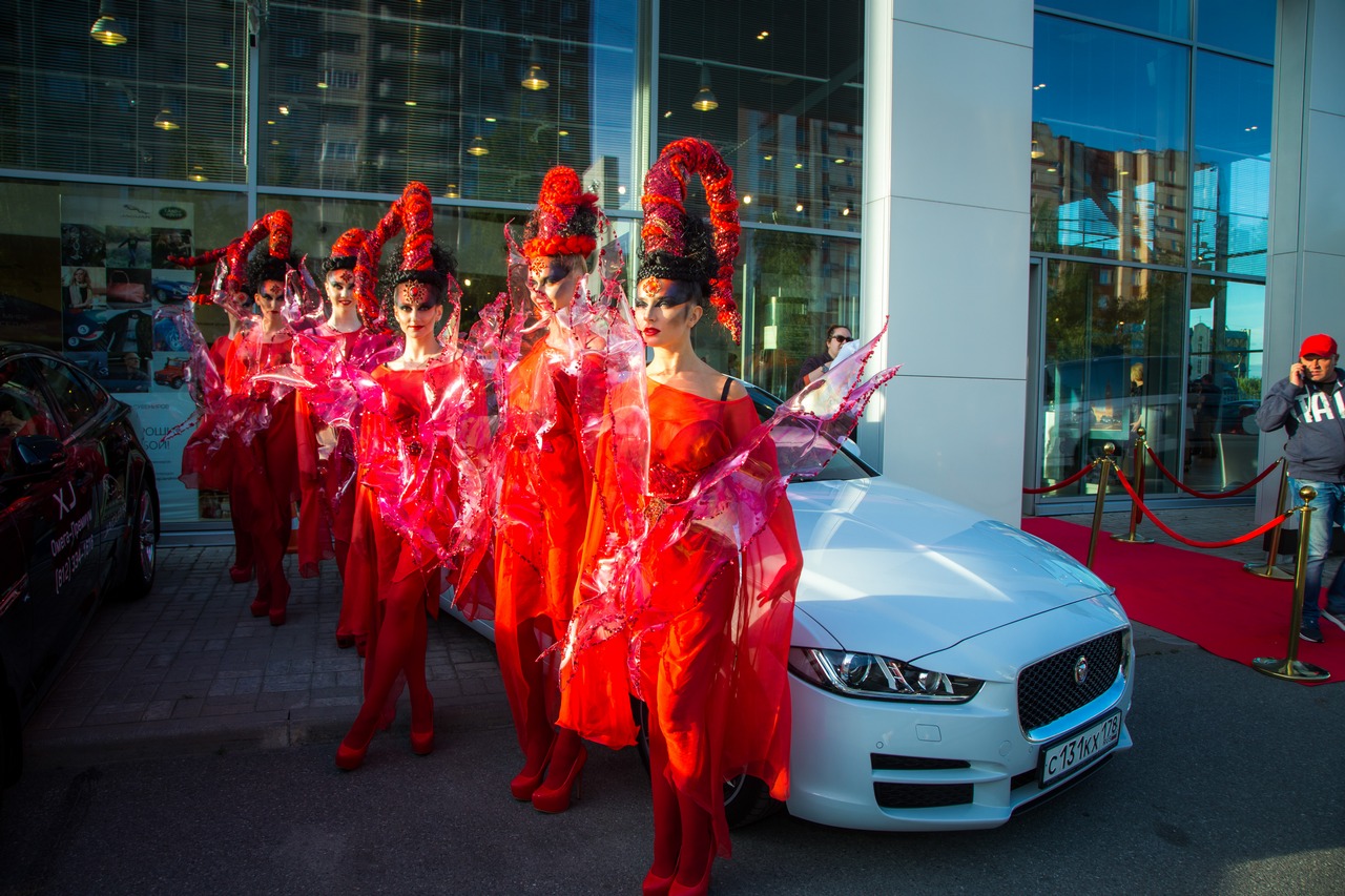 На другом, северном конце Санкт-Петербурга была презентована уже черная машина, антураж вокруг которой был обставлен самым подходящим ярко-красным цветом – невероятные костюмы моделей и их дефиле радовали публику в автосалоне компании «Омега-Премиум».