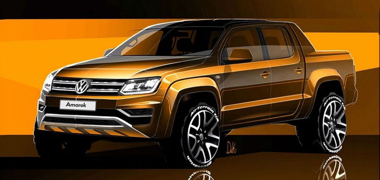 Компания Volkswagen NFZ опубликовала первые скетчи (дизайнерские эскизы) рестайлинговой версии пикапа Amarok.