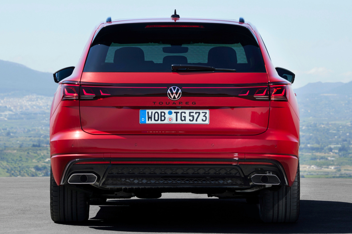 У обновленного кроссовера модули матричной оптики соединены светодиодной полосой, которую уже можно считать фирменной особенностью марки. Подсвечивается у обновленных Touareg не только передний логотип VW, но и задний: прежде немецкое законодательство подобного не допускало. Форма фар стала лаконичнее, а задние фонари теперь соединены светодиодной «перемычкой».