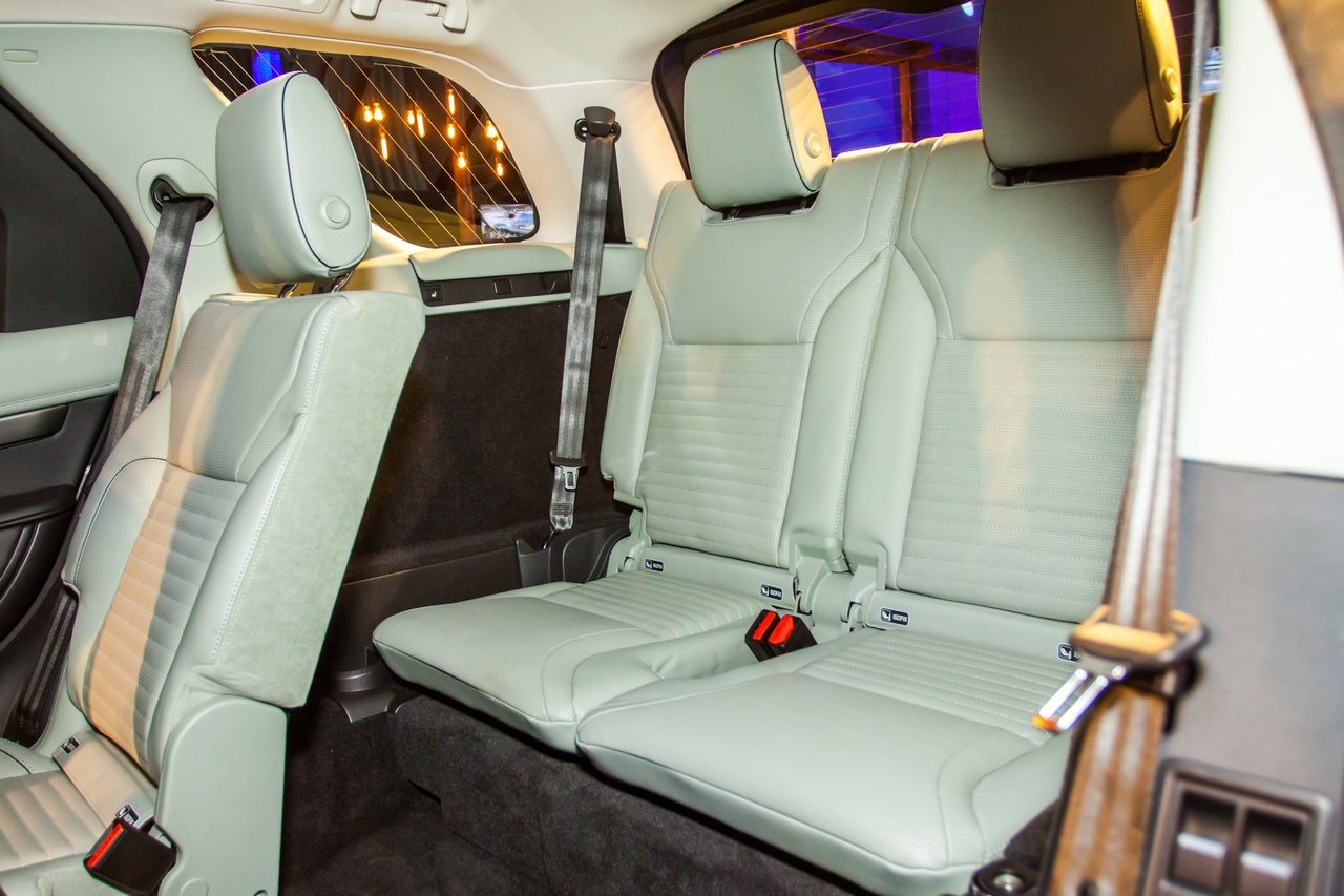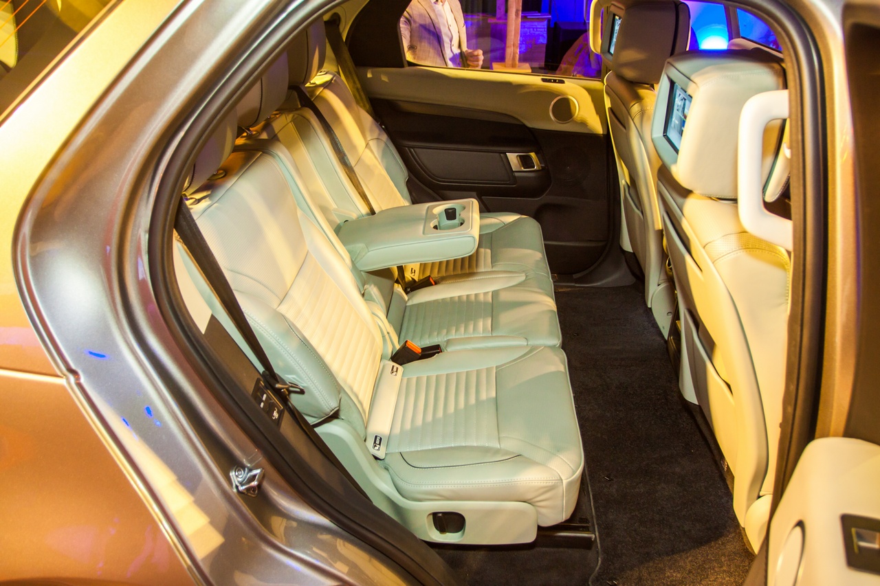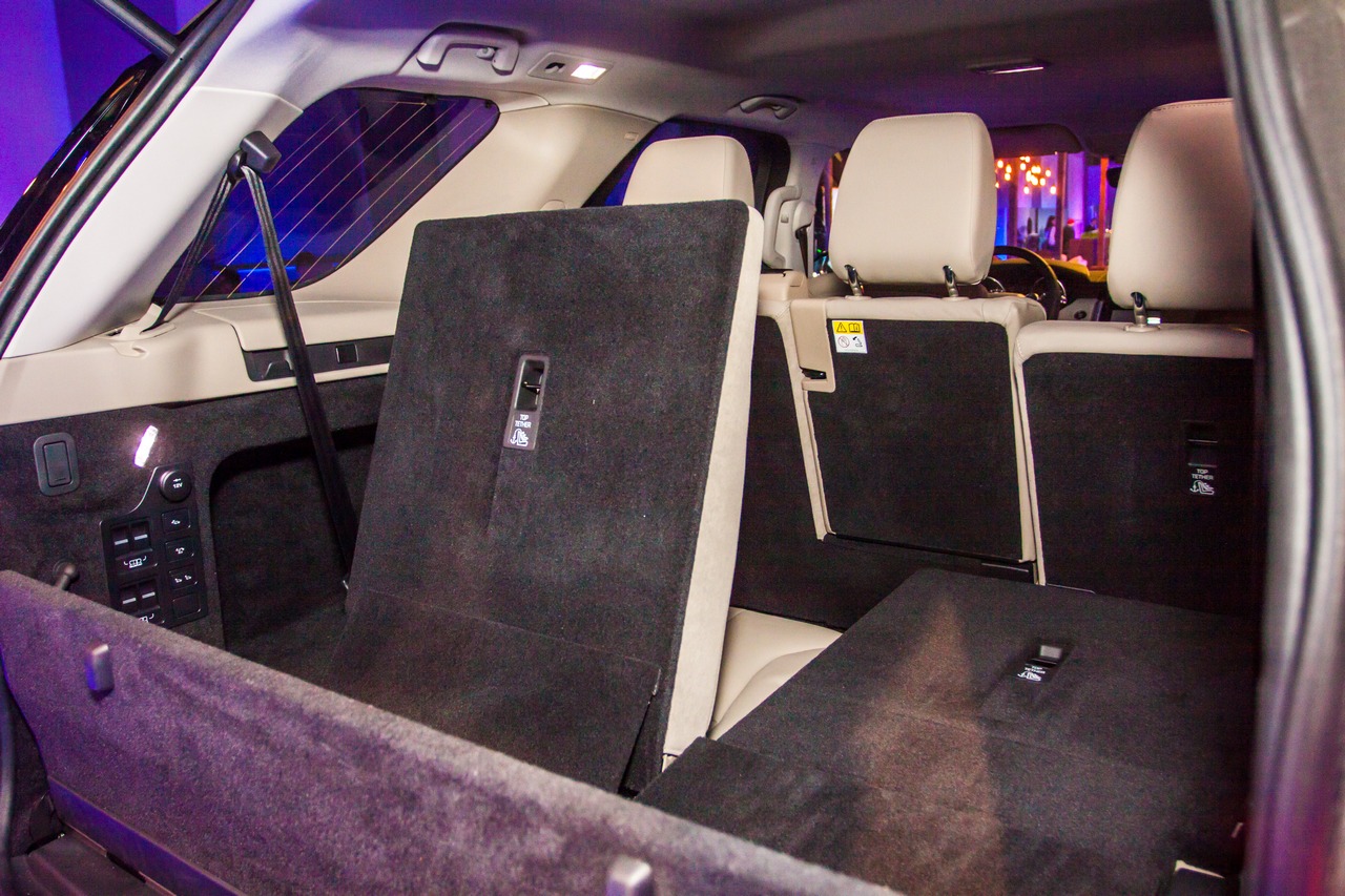 Главное отличие именно в размерах, которые позволяют новому Discovery иметь в виде дополнительной опции полноценный третий ряд сидений в виде двух кресел. Места действительно в достатке абсолютно для всех севших в машину. Центральный ряд, как и прежде, представляет собой регулируемый во всех направлениях органайзер. Причем абсолютно все регулировки электрические, включая даже бортик в багажнике.
