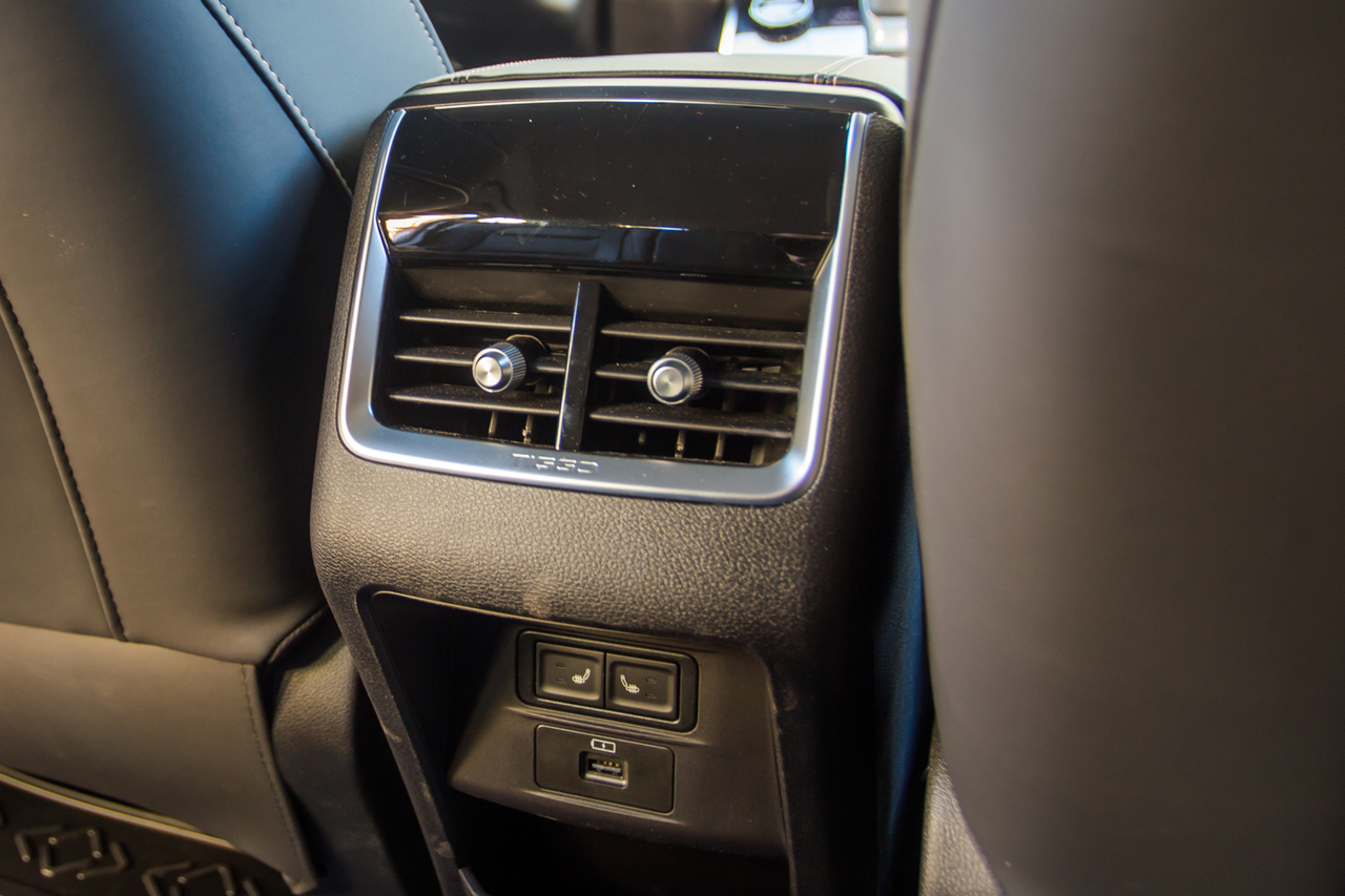 Пассажирам на втором ряду — раздолье. Части кресел могут регулироваться по двум направлениям, имеют подогрев, USB-розетку, дефлекторы обдува и подлокотник с подстаканниками.