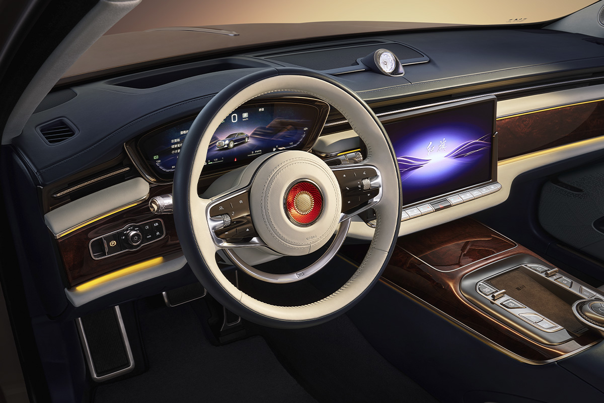 «Внутреннее пространство Hongqi Guoya спроектировано как персональный кабинет, где каждый элемент отделки подчеркивает исключительный статус владельца», — отмечают также представители бренда.
