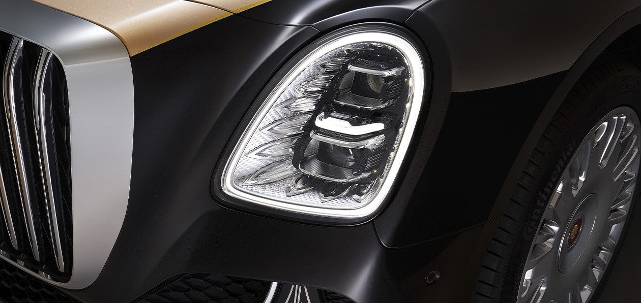 Внешне автомобиль напоминает Maybach. В том числе, родство выдает и двухцветное исполнение.