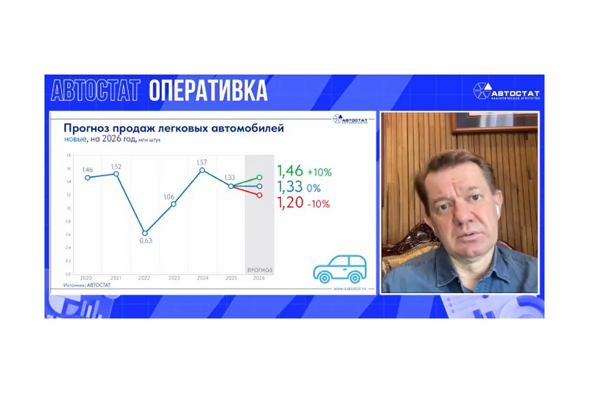 Базовый прогноз аналитического агентства «Автостат» по развитию российского рынка новых легковых автомобилей в 2026 году предполагает продажи на уровне прошлого года: около 1,33 млн единиц.