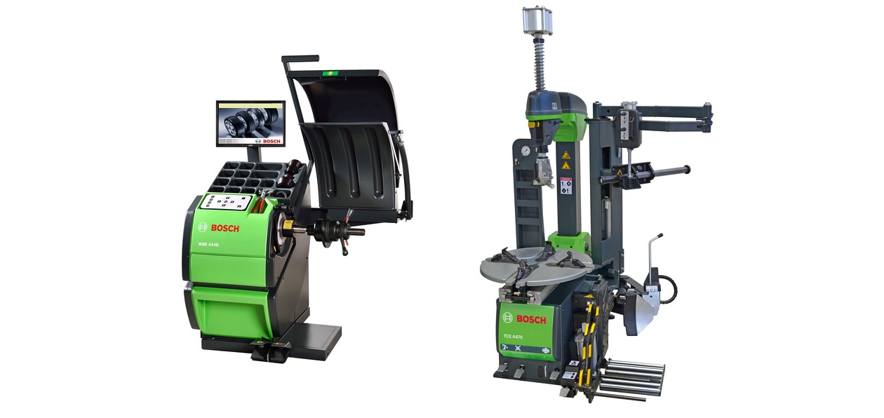 На выставке шин, оборудования и материалов для обслуживания колес Reifen 2016 в Эссене (Германия) Bosch представил новые балансировочные стенды WBE 4440 и WBE 4240 с автоматическим бесконтактным определением ширины колеса, а также подъемник для шиномонтажных станков TSL 230