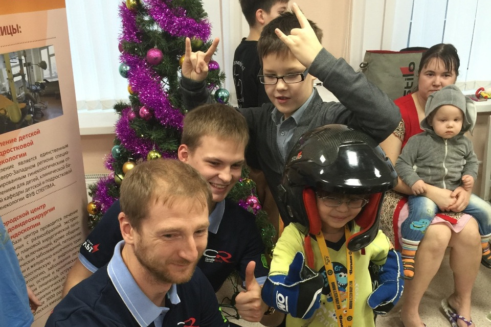 Кроме того, в рамках благотворительной акции «Побеждает тот, в кого верят» во всех розничных магазинах сети «Движком» продавались автомобильные наклейки «Я подарил счастье ребенку» и установливались короба для благотворительных пожертвований.