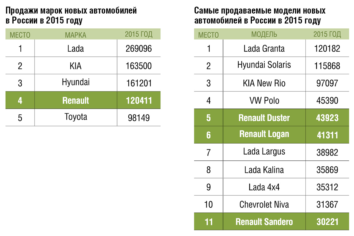 Компания Renault с точностью до наоборот поставила на «народность» и максимальную локализацию, получив колоссальную отдачу, и даже в кризис удержала позиции на рынке. Это, собственно, и подтвердил Жером Панно: «По результатам года Renault Russia занимает четвертое место с долей рынка 7,5% и 120 411 проданных автомобилей». Неудивителен и второй факт: 96% продаж марки приходится всего на три модели — бюджетные Logan, Sandero и кроссовер Duster. «Нам удалось достичь таких хороших результатов благодаря высокому уровню локализации производства и модельной линейке, адаптированной для потребностей наших клиентов», — продолжил коммерческий директор.