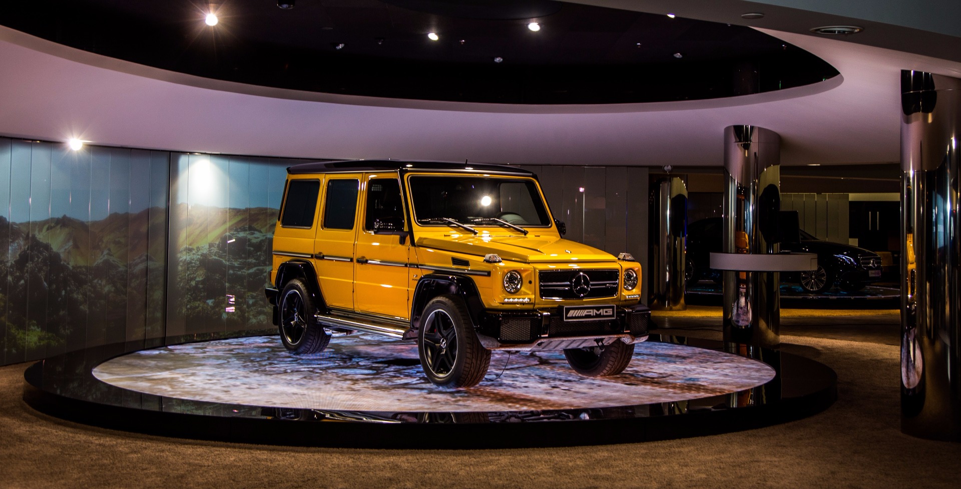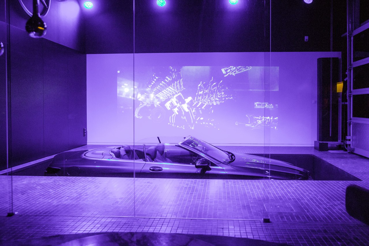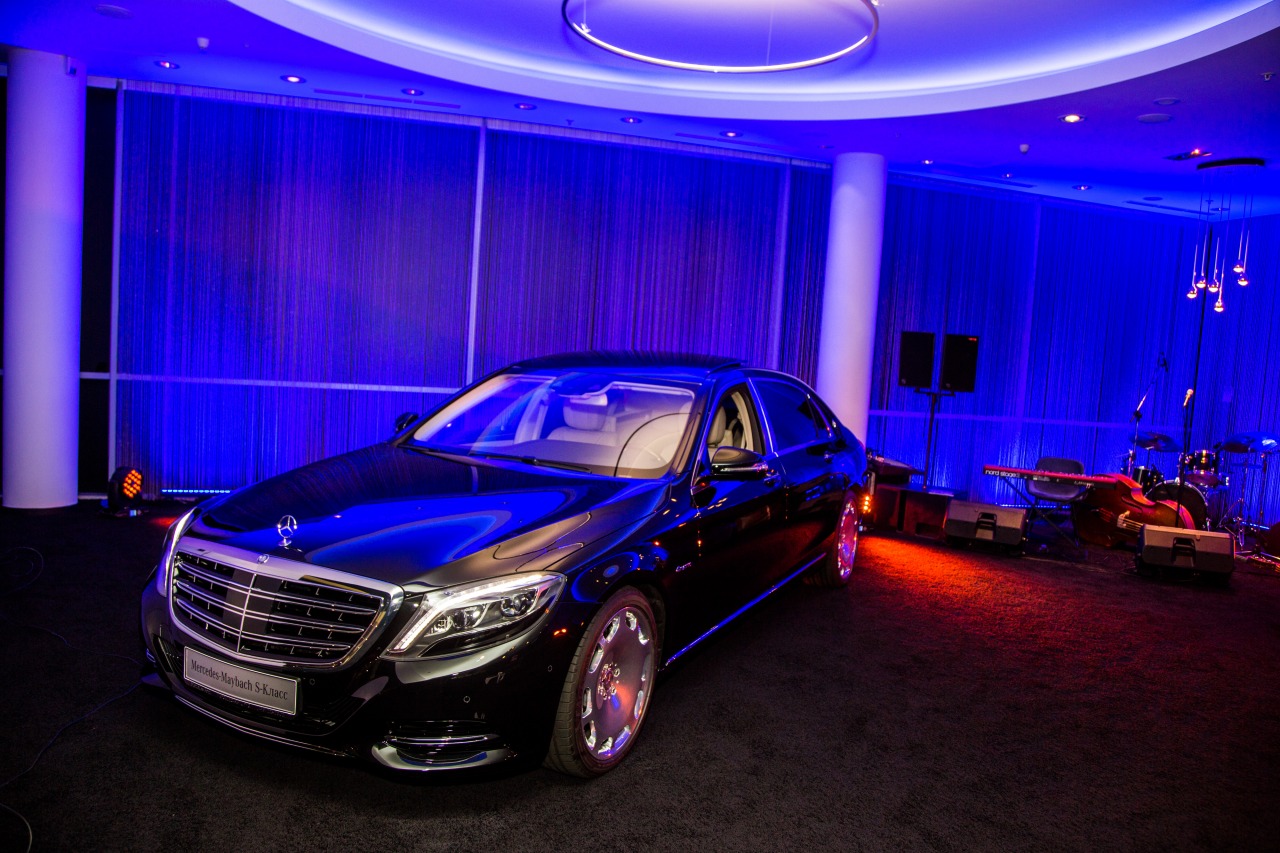 Главных творческих задумки две. Первая — разделить все пространство на три тематические зоны, каждая из которых отождествляет отдельный мир в рамках Mercedes-Benz. Фундаментом служит популярная линейка модельного ряда, которая и составляет основную экспозицию. А вот покупателям Mercedes S-Class и уж тем более Maybach положен отдельный приватный зал, оформленный в лучших традициях закрытых клубов с живой музыкой и баром.