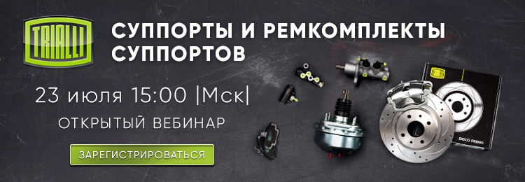 Компания Trialli анонсировала открытый технический вебинар на тему: «Trialli – детали тормозной системы: суппорты и ремкомплекты суппортов».