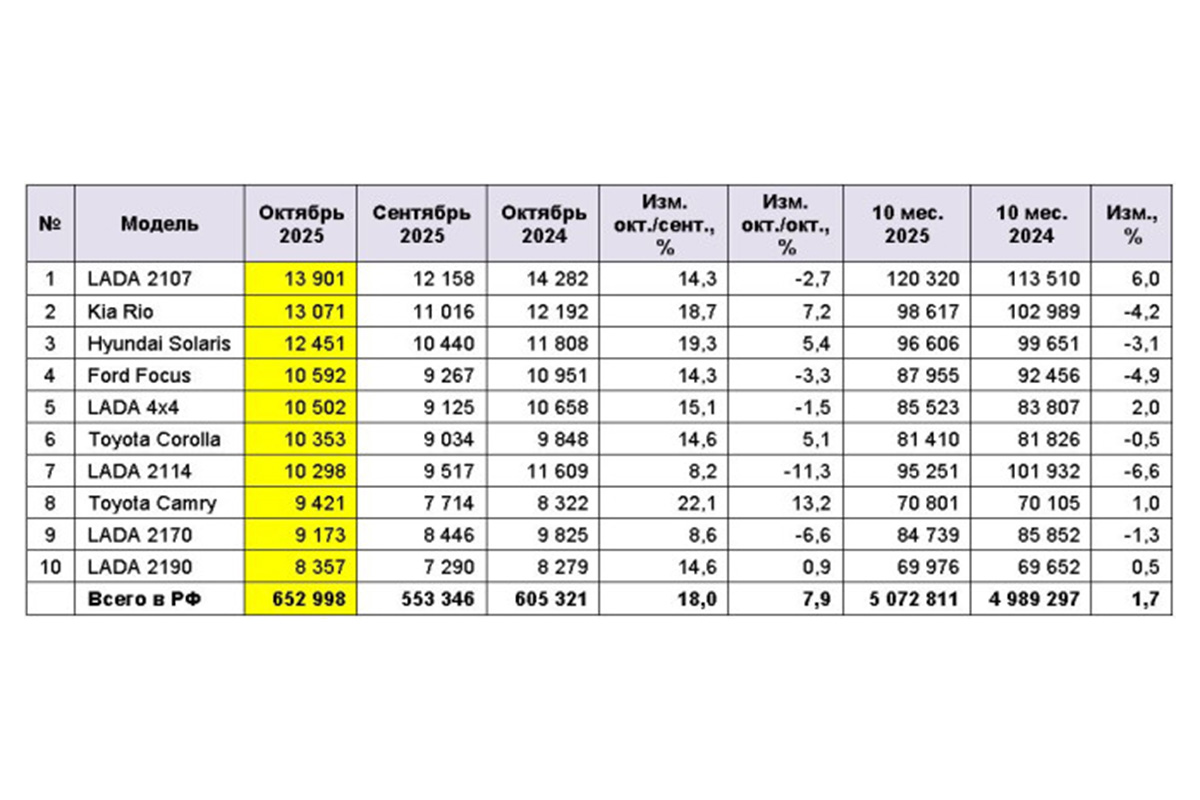 За 10 месяцев 2025 года россияне купили 5 072 811 легковых автомобилей с пробегом — на 1,7% больше, чем в январе – октябре 2024 года.