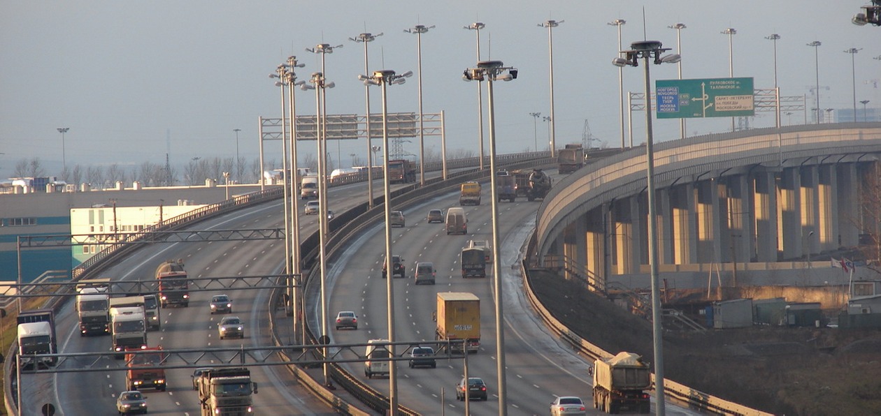 На кольцевой автодороге Санкт-Петербурга начались работы по обследованию опор и замене дорожных знаков.