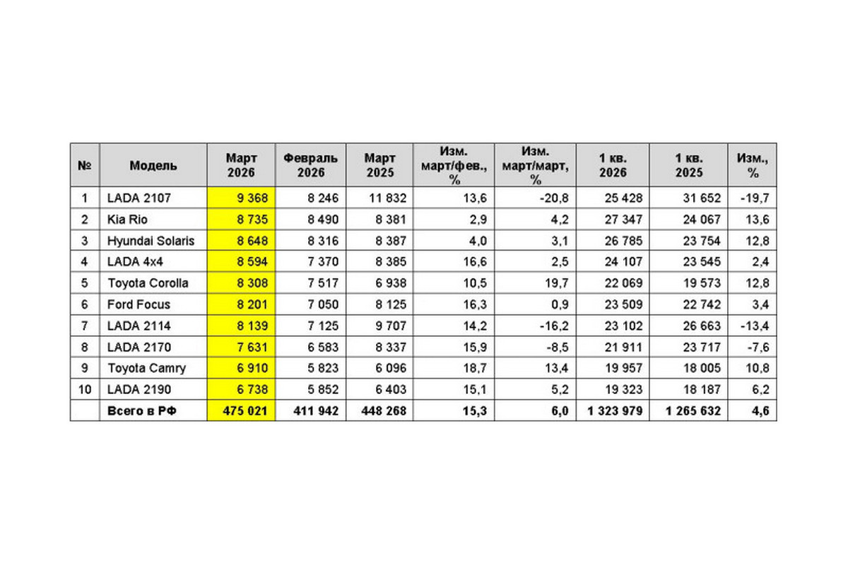 Такой показатель на 15,3% больше, чем в предыдущем месяце и на 6% больше, чем в марте прошлого года, сообщает «Автостат».