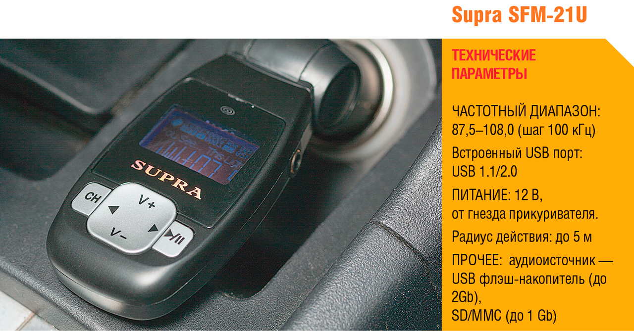 Устройство со встроенной памятью в 2 Гб и интерфейсами USB/SD/MMC/AUX, работающее в диапазоне радиочастот от 87,5 до 108,0 МГц. Но при неплохой технической оснащенности этот трансмиттер среди участвующих в нашем тесте моделей оказался, увы, аутсайдером по качеству звука, выдав наибольшее число помех и самое бедное по спектру частот, глухое звучание, напоминающее старый советский кассетник с затертой пленкой.