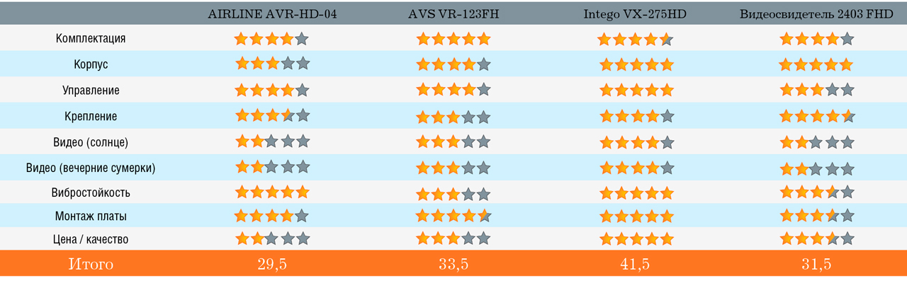 Тест бюджетных видеорегистраторов Airline AVR-HD-04, AVS VR-123FH, Intego VX-275HD, «Видеосвидетель 2403 FHD»