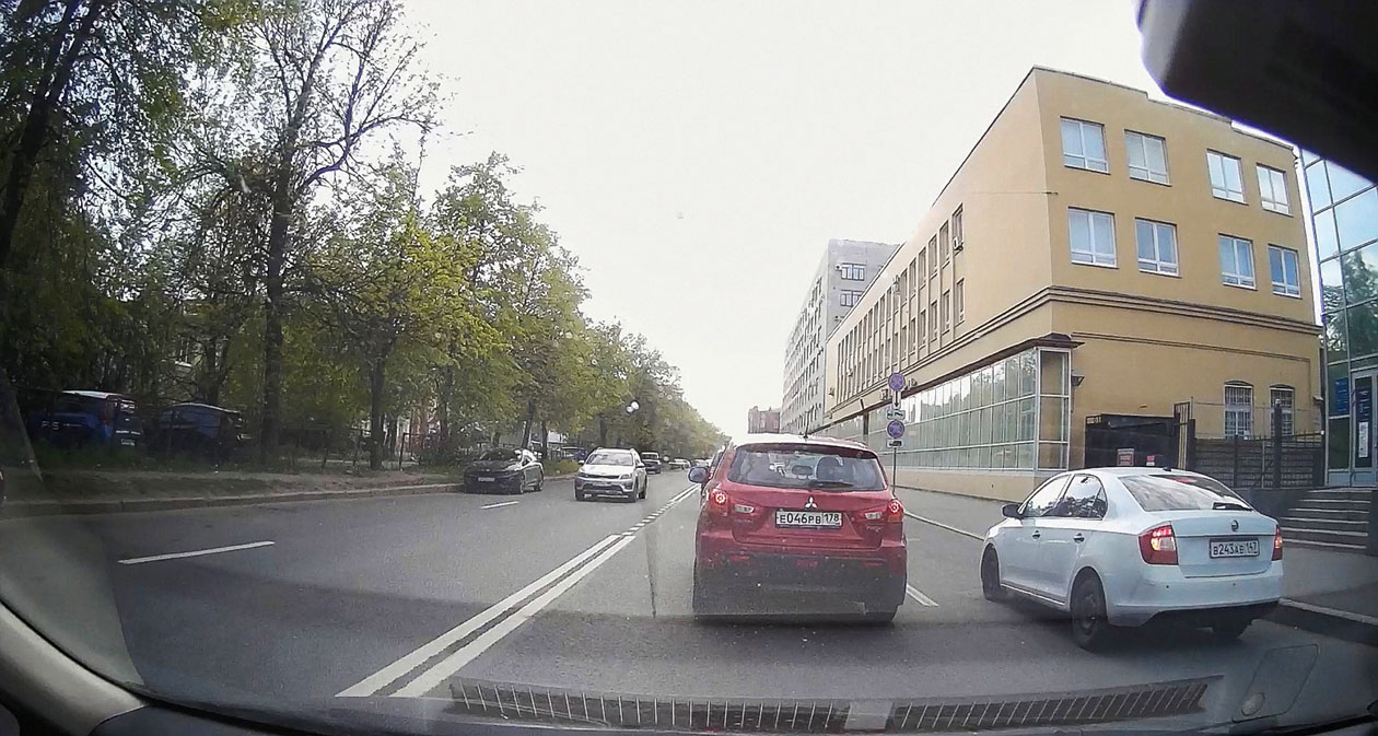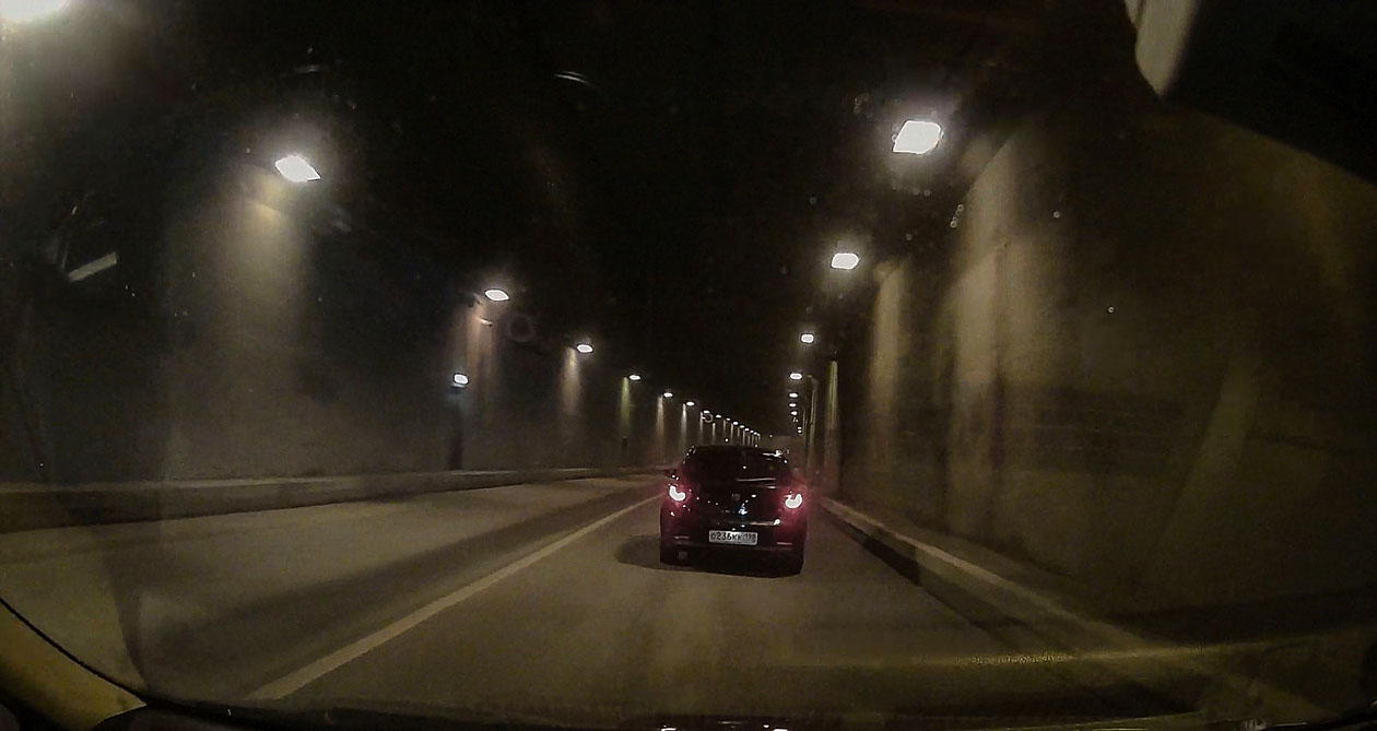 Дневная съемка, помимо привычной для бренда Mio хорошей цветопередачи, радует качественным изображением по краям кадра. Номера припаркованных автомобилей спокойно считываются даже на приличных скоростях. Знаки впередиидущего автомобиля без проблем различаются на расстоянии трех-четырех корпусов машины.