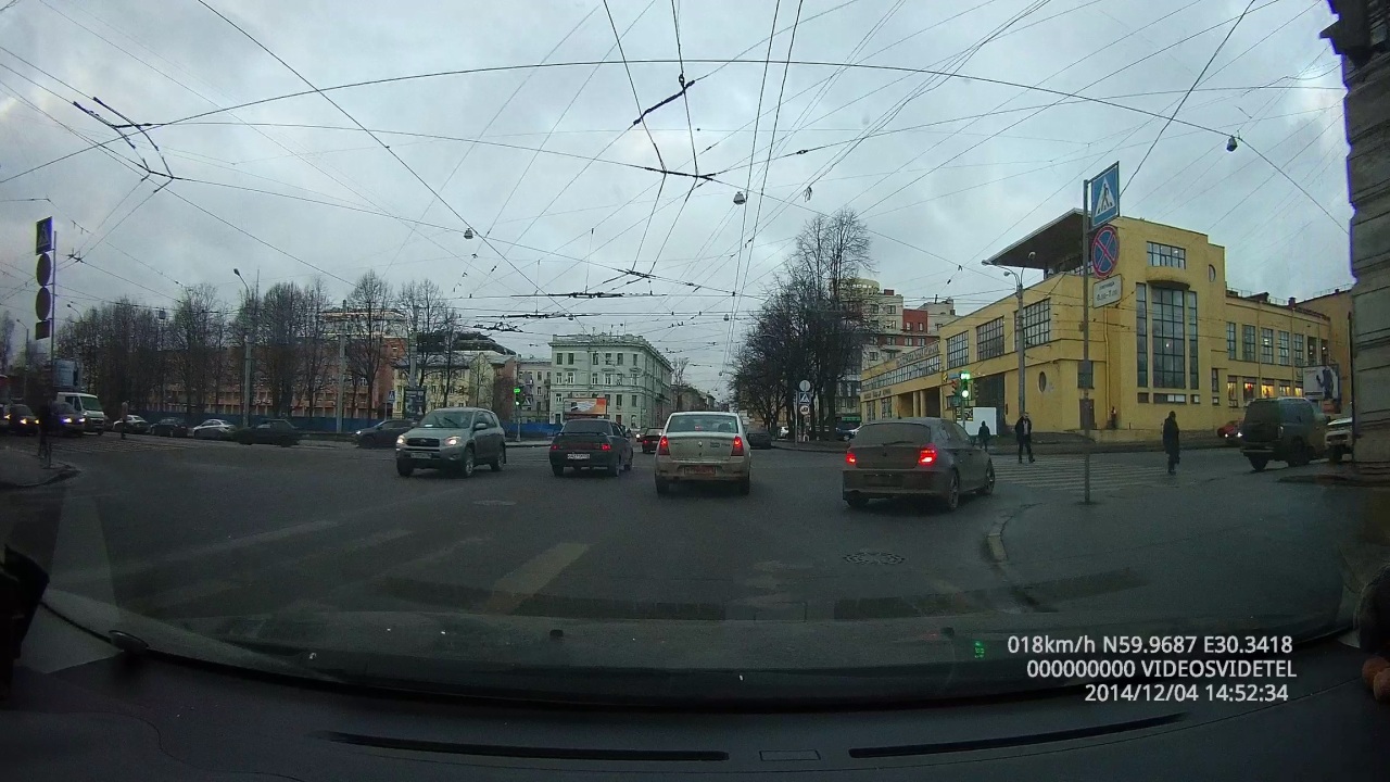 По иронии судьбы, тестировать камеру заднего вида у Видеосвидетель 5410 FHD 2 CH нам пришлось на автомобиле с тонировкой заднего стекла. Тонировка, впрочем, не глухая и позволяет видеть происходящее сзади через салонное зеркало. И с такой ситуацией камера справилась на пять баллов, притом что и день за окном был по-петербургски темный и сумрачный. Сквозь тонировку камера выдала картинку в «поздних синих сумерках», однако совершенно не провалила детализацию.