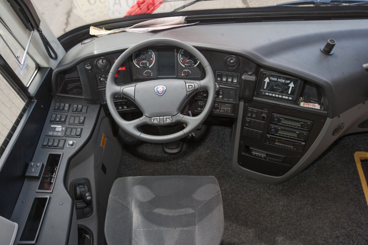 Автобус рассчитан на 57 пассажиров. В салоне – два ЖК-монитора, на которые выводится «картинка» с CD/DVD-проигрывателя. Предусмотрены также USB-розетки для зарядки гаджетов и WiFi-роутер для подключения к Интернету.