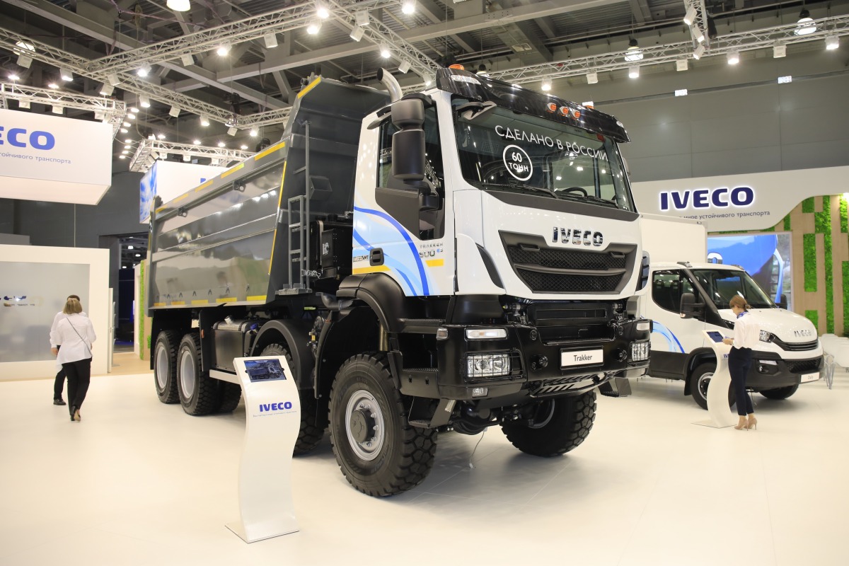 Тяжелая техника Iveco на традиционном топливе представлена на «Комтрансе 2019» популярными автомобилями семейства Trakker, произведенными в России на совместном предприятии «Ивеко-АМТ». В частности, на стенде компании выставлены седельный тягач Trakker с колесной формулой 6×6, а также cамосвал Trakker с колесной формулой 8×8 грузоподъемностью до 40 т, оснащенный самосвальным кузовом «Ивеко-АМТ» из стали Hardox. Последний оснащен двигателем FPT Industrial Cursor 13, развивающий на пике 500 л.с. и 2300 Нм, с которым агрегатирована полностью автоматическая коробка передач Allison 4500.
