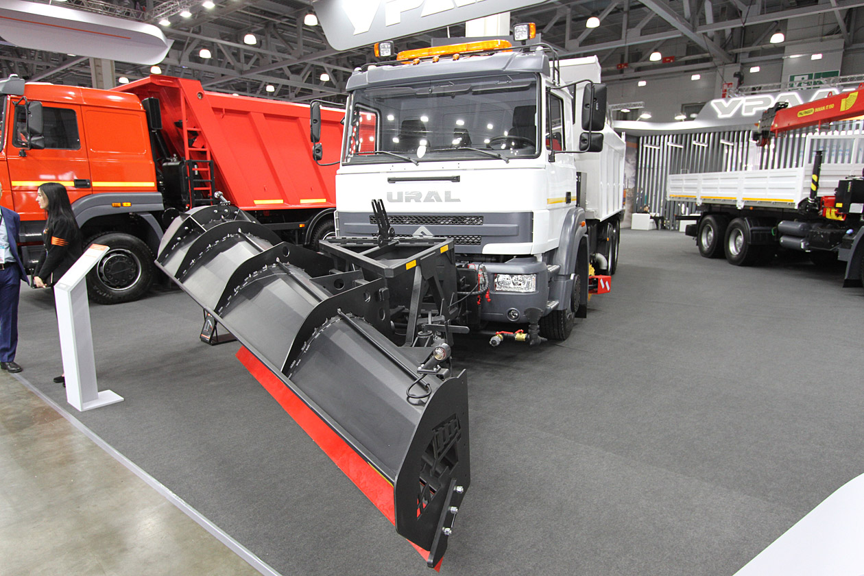 Завод «Урал» представил в своей экспозиции образцы дорожных автомобилей, а также новинку — самосвал «Урал» 6370 6х6 полной массой 34 тонны с двускатной ошиновкой и модернизированной двухместной кабиной. Дорожное семейство грузовиков «Урал» 6х4 было представлено самосвалом и автобетоносмесителем на шасси «Урал» С35510 (полная масса до 35 тонн), бортовым автомобилем с КМУ и комбинированной дорожной машиной на шасси «Урал» С34520 (полная масса до 27 тонн).