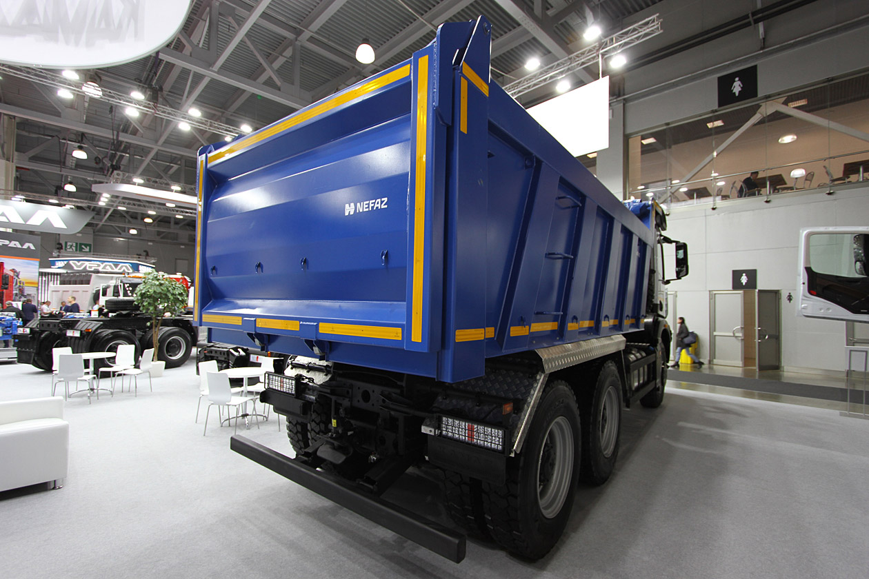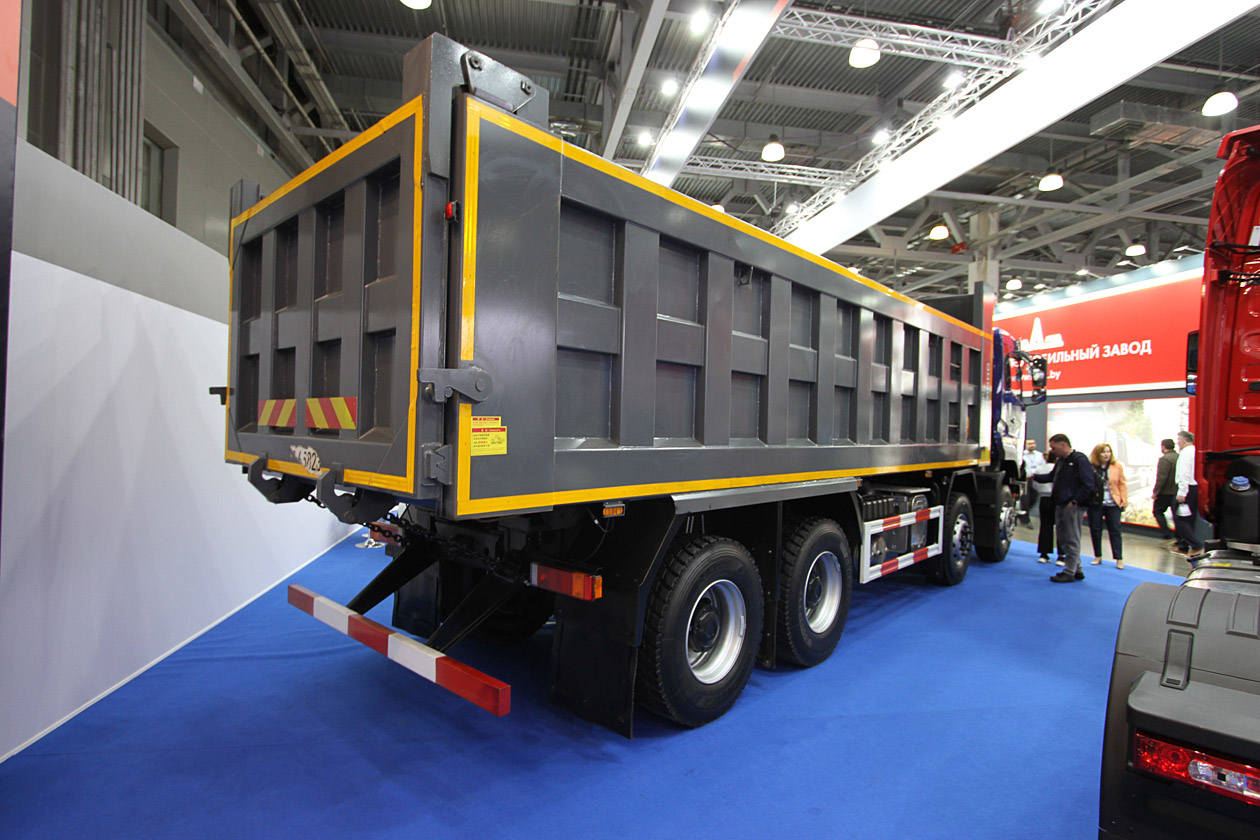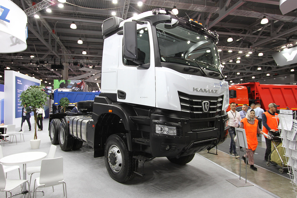 На стенде компании были выставлены представители семейства К5 — самосвалы с колесной формулой 6х4 и 6х6, а также седельного тягача 6х6. Все машины оснащены рядными «шестерками» КАМАЗ-910 мощностью 450 или 460 л. с.