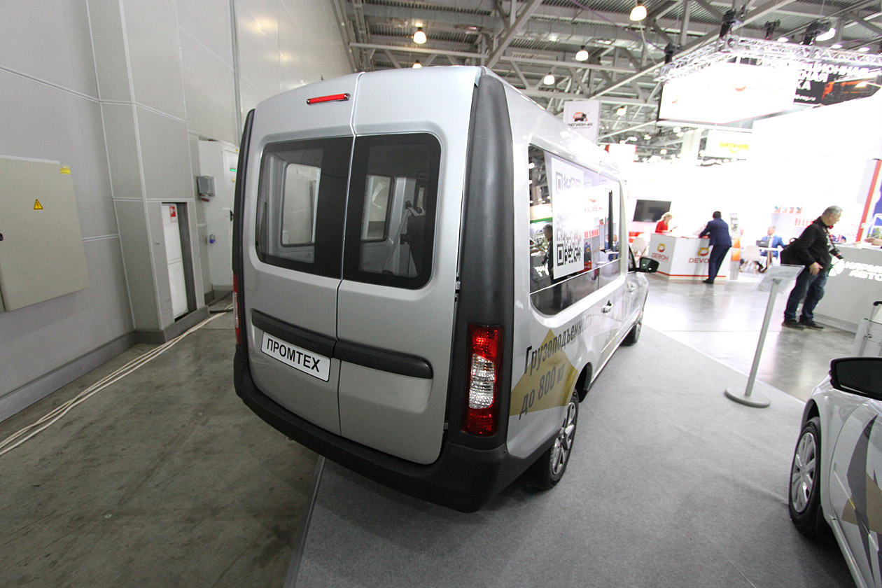 Компания «Промтех» представила перспективные разработки в сегменте LCV на базе отечественных автомобилей и импортного шасси. К примеру, Niva Pickup — полноприводный пикап на базе легендарного внедорожника Niva Legend. Машина создана путем соединения передней части Niva с оригинальным салоном и кузовом, разработанным конструкторами данного «Промтеха». Получившийся в итоге автомобиль рассчитан на перевозку пяти человек и груза суммарной массой 700 кг.