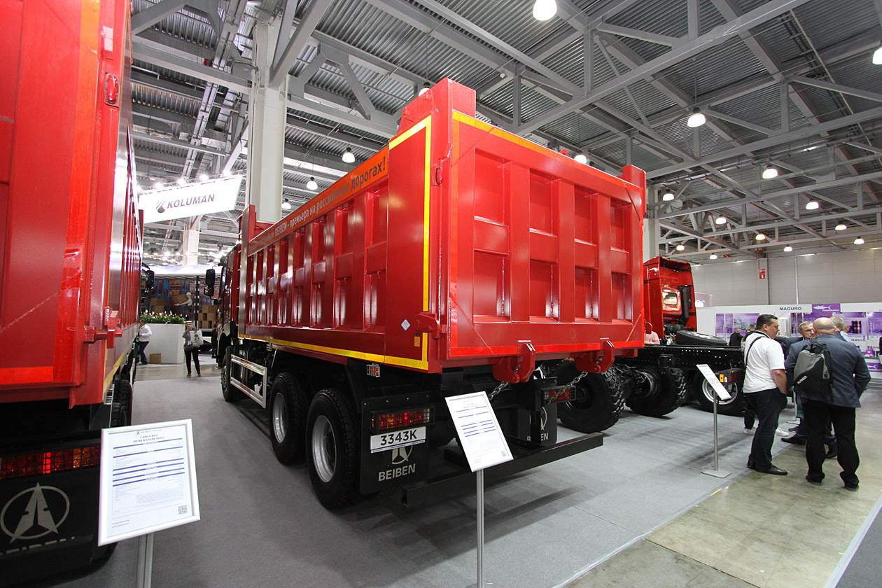 Долгое время не выставлявшийся белорусский МАЗ-MAN прервал молчание показом сортиментовоза с колесной формулой 6х6, а также самосвала с колесной формулой 8х8 и платформой объемом 20 куб. м. Оба грузовика оснащены двигателям Weichai мощностью 460 л. с.